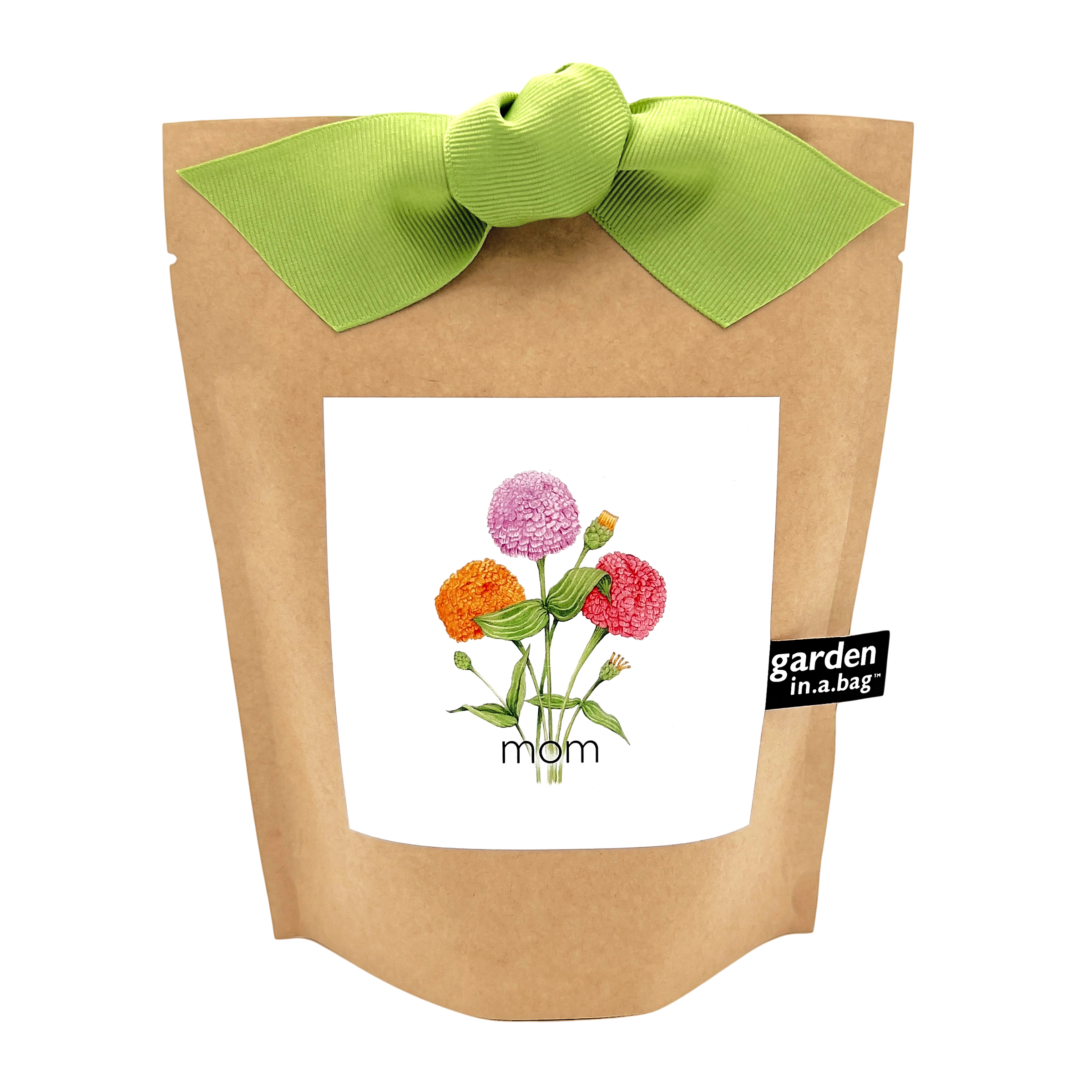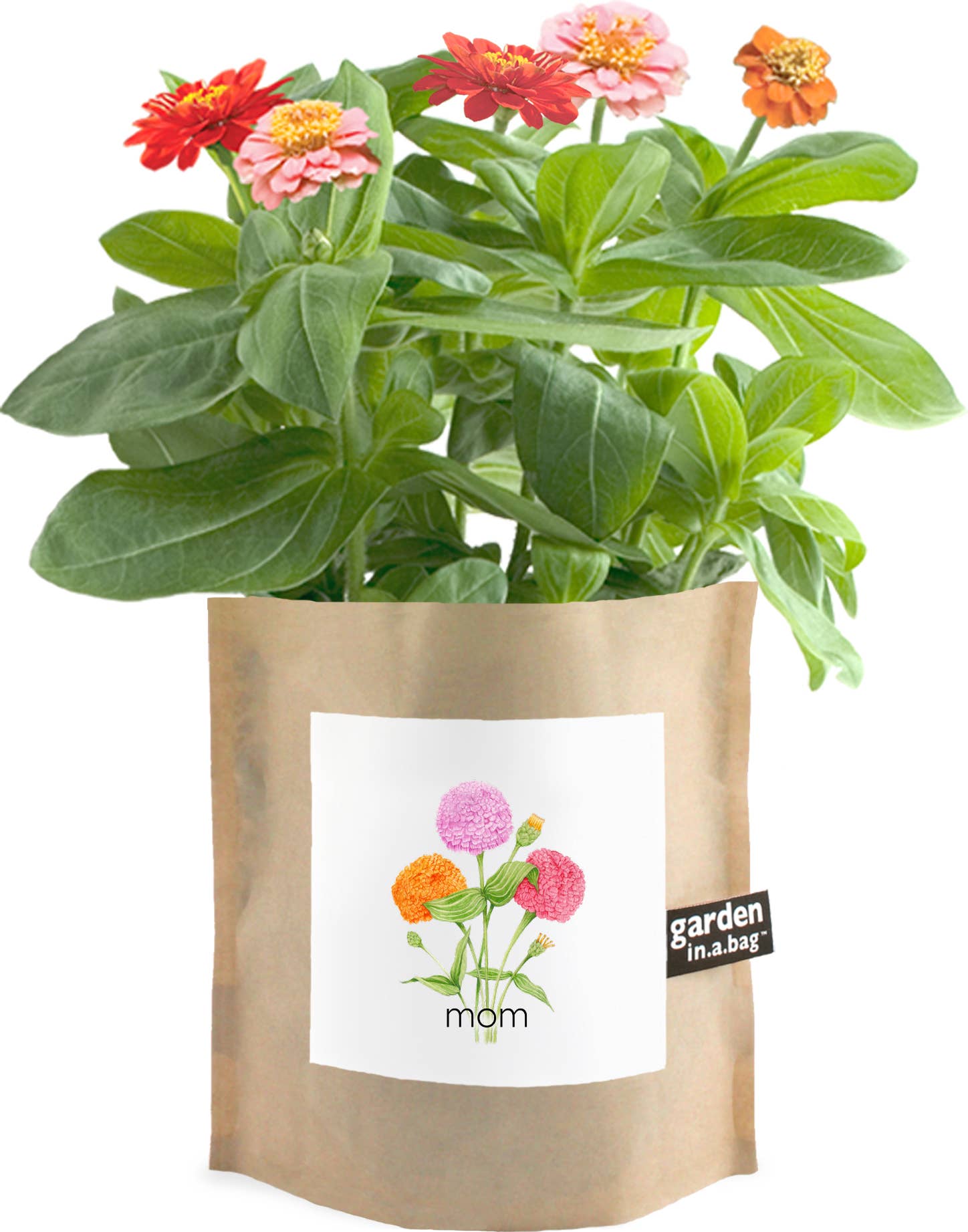 Celebrate Mom with the Garden in a Bag, featuring easy-to-grow dwarf zinnias with multi-petaled blooms in a variety of bold, cheerful colors. Zinnias bloom from spring through autumn, creating a long-lasting display of beauty, and pinching off old blooms encourages even more flowers.