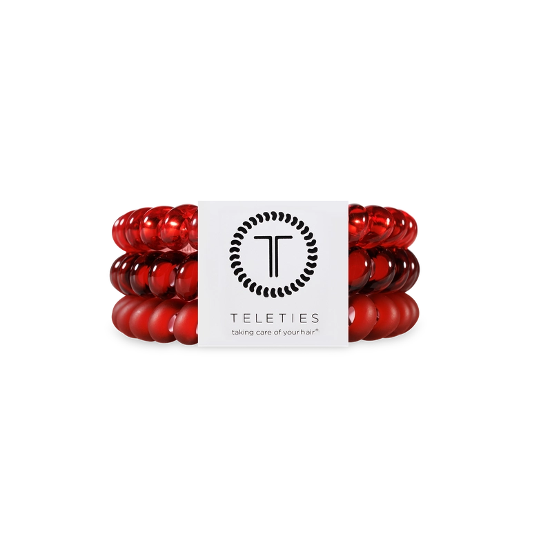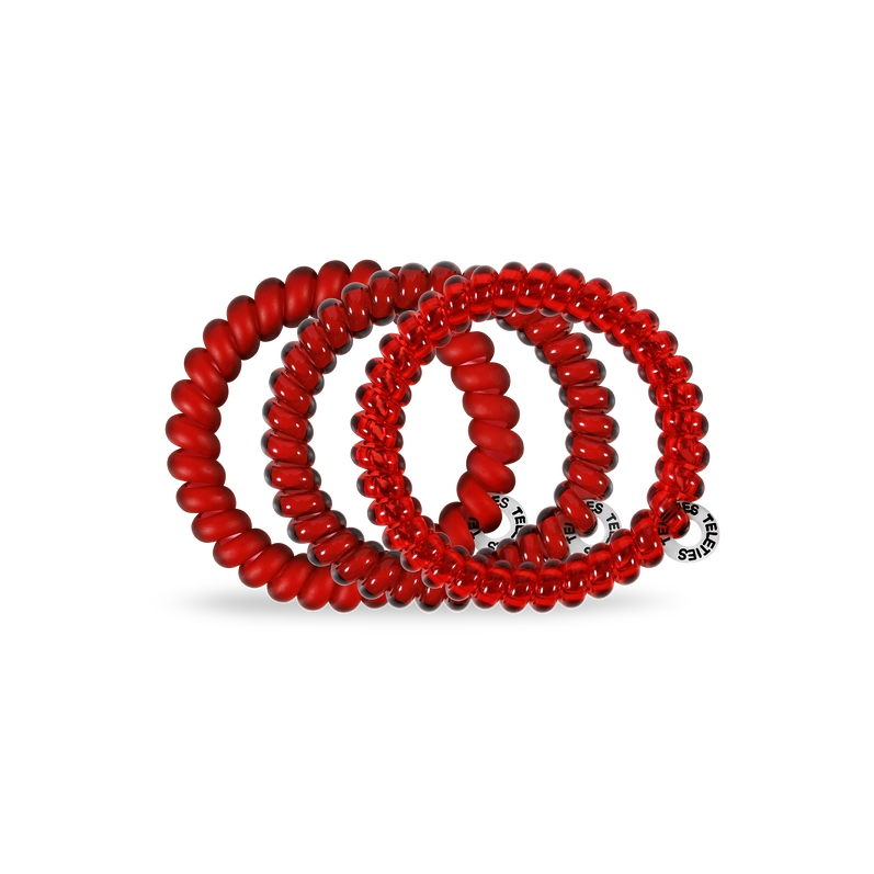 Hold your hair and enhance your style with TELETIES. The strong grip, no rip hair tie that doubles as a bracelet. Strong, pretty and stylish, TELETIES are designed to withstand everyday demands while taking your look to the next level. Sold in packs of three. The small size is 4.5cm wide x 0.5cm thick.