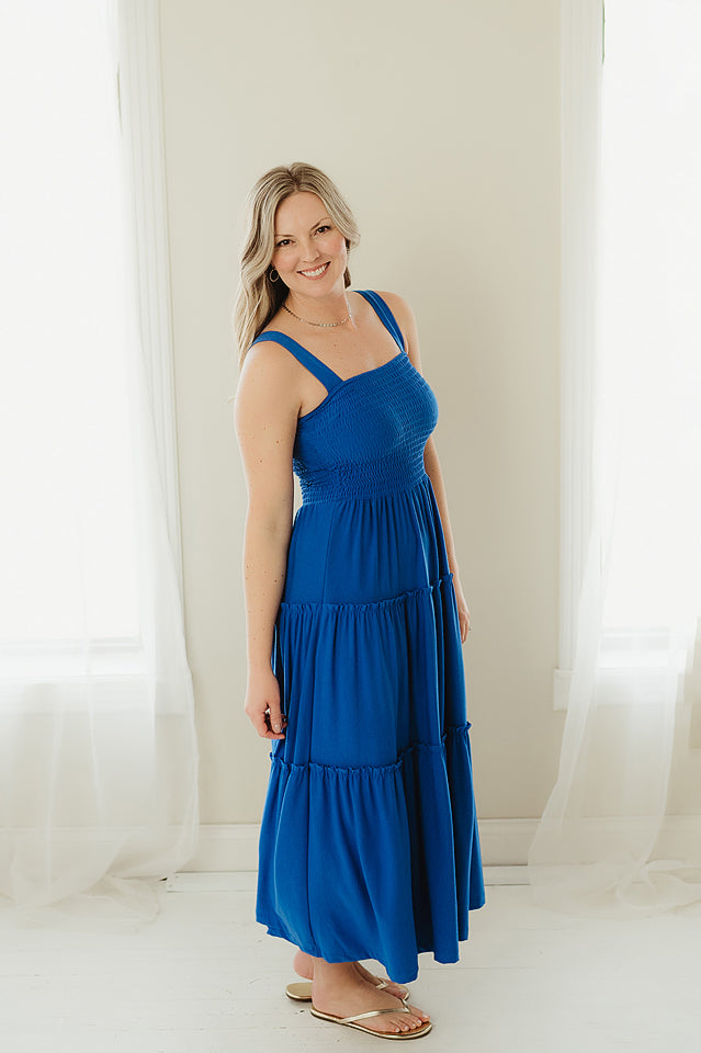 Get ready to turn heads in the Tier Grace Midi dress. This playful midi features a square neck, smocked top, and wide straps for a versatile look. Perfect for any occasion, this dress will make you stand out in the crowd.