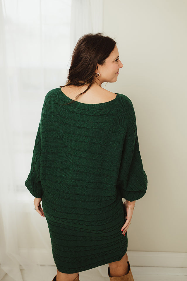 Meet your new go-to layering piece! This Dolman Sweater Dress features an effortless off-the-shoulder boat neckline and those dreamy balloon sleeves with ribbed hems that scream cozy-chic. The cable-knit detail adds texture and visual interest, while the oversized silhouette keeps things relaxed and comfortable. Soft, breathable fabric makes it perfect for transitional seasons—throw it on with leggings or wear solo for instant style. Whether you're keeping it casual or dressing it up, this pullover beauty delivers that elevated everyday vibe without trying too hard.