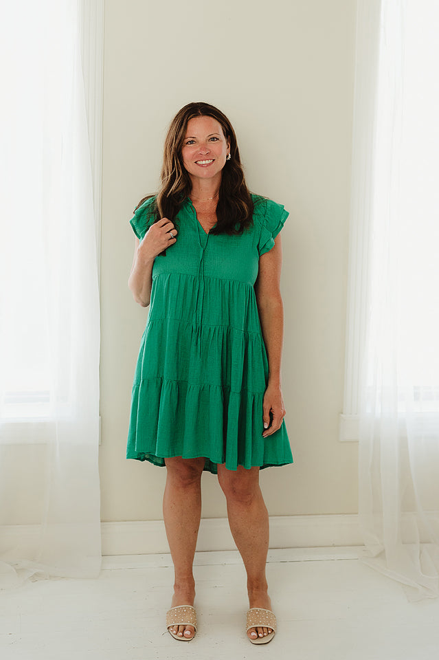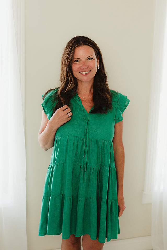 Gear up for a summer soiree with our Lily Sunset Dress. This linen A-Line dress is both chic and comfy, featuring a tie front and playful shoulder shirring details. Time to shine in style for any occasion!