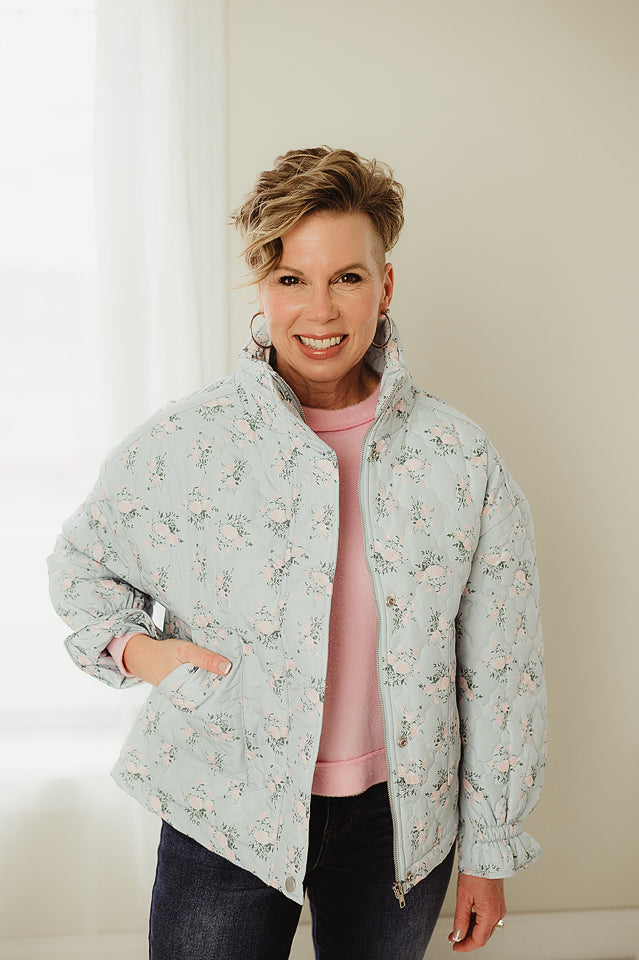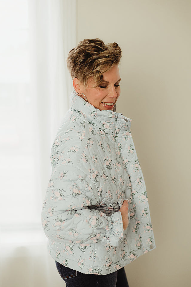 Layer up in style with this charming Floral Quilted Oversized Jacket that's equal parts cozy and chic. The oversized silhouette gives you that effortless, relaxed vibe, while the playful print adds personality to any outfit. Rock it buttoned up for a polished look or unzip it for maximum versatility. Practical side pockets keep your essentials close, and the mock neck adds just the right amount of structure. Perfect for casual days when you want comfort without compromising on flair.