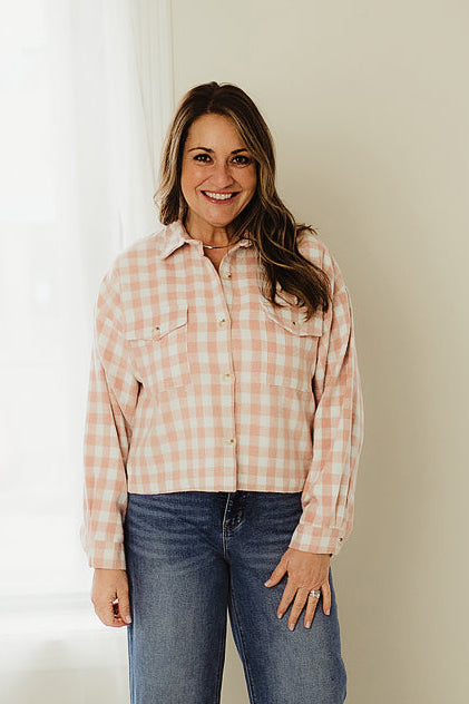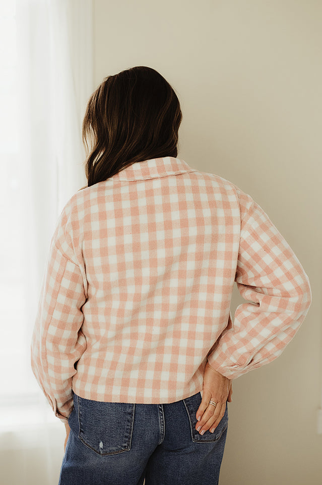 The Gingham Crop Jacket blends classic charm with cozy comfort. Featuring a soft brushed finish, cropped silhouette, and functional front pocket details, this versatile layer is perfect for transitional styling. The timeless gingham pattern adds a playful yet polished touch, making it easy to throw on over tees, knits, or dresses for an effortlessly chic look.