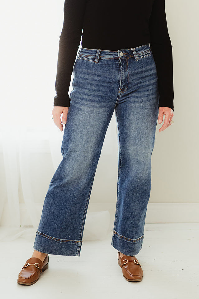Get ready to turn heads in the Addie Crop Jeans! These high-rise wide-leg jeans blend comfort and style, perfect for showing off your favorite shoes or rocking a bold sock. The cropped cut keeps things fun and flirty, while the wide silhouette adds a trendy twist to your everyday look. Whether you're dancing through the day or kicking back on the weekend, these jeans bring playful personality to your wardrobe.