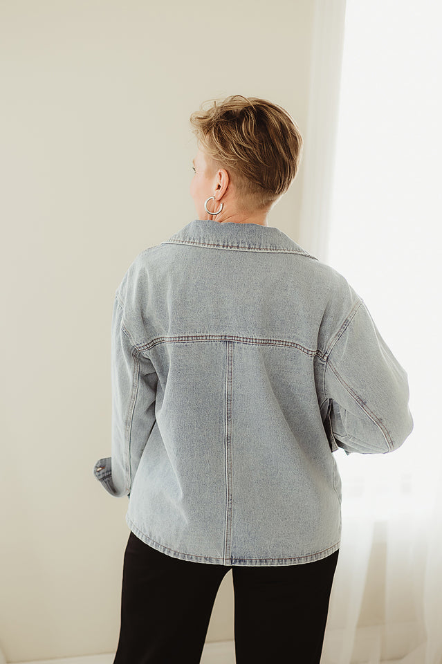 The Urban Denim Jacket features a regular fit with long sleeves and a button-up front closure for timeless style. Crafted from durable denim fabric, it includes practical front pockets for easy storage, making it a versatile layer that pairs effortlessly with casual or workwear-inspired outfits.