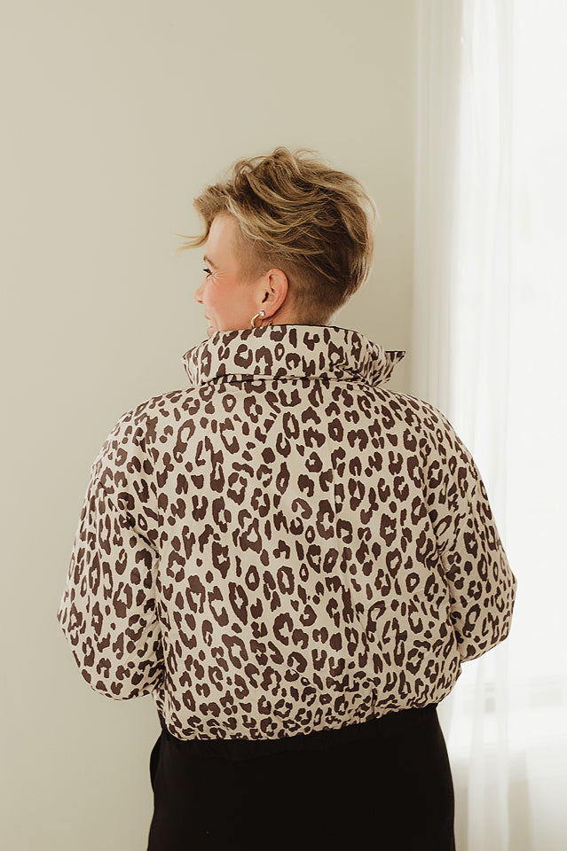Stay warm and stylish in our Posh Reversible Puffer — the perfect blend of function and fashion. Designed with a flattering cinched waist and practical side pockets, this padded, quilted jacket keeps you cozy without the bulk. The double-sided design features a chic solid exterior and a fun animal print interior, giving you two looks in one! Finished with a sleek stand collar, it’s a must-have piece for effortlessly elevating your cold-weather style.