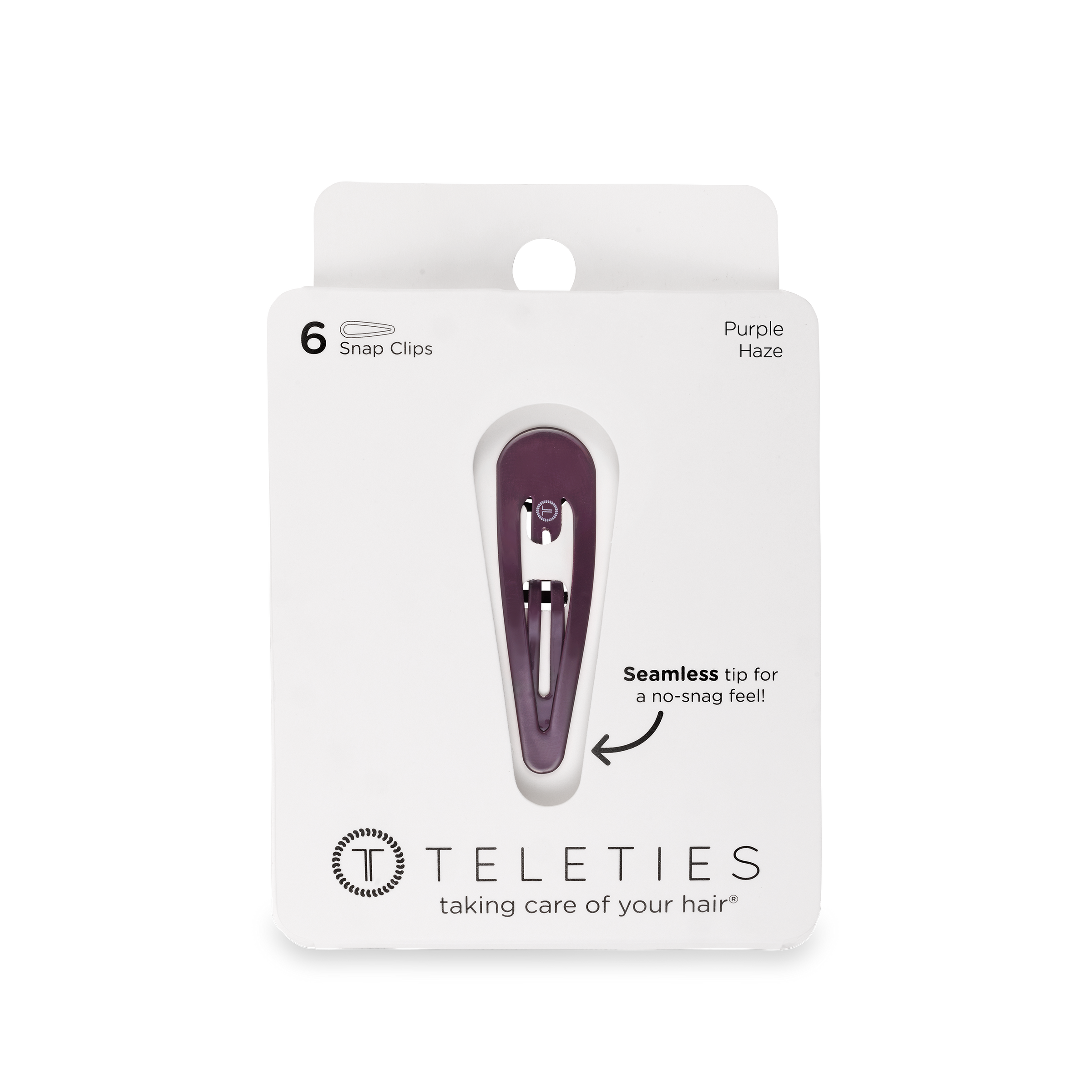 TELETIES Purple Haze Snap Clips (6Ct) in Purple offer a secure seamless tip for a no snag feel. Perfect for all hair types, these stylish barrettes provide a gentle yet firm hold, whether you're styling or simply pulling back strands. Available in a range of colors, TELETIES Snap Clips combine functionality with flair, ensuring your hair stays put all day long.