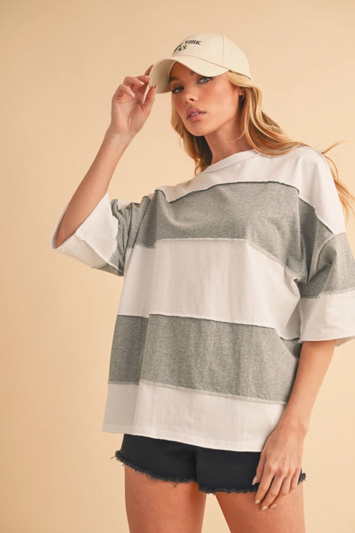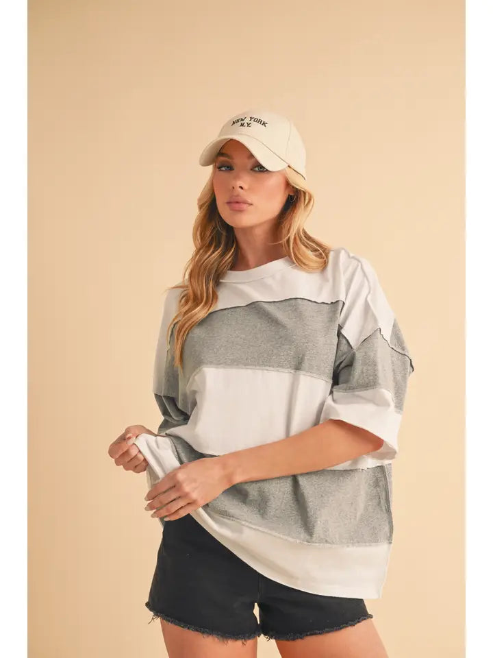 Get ready to turn heads in the Polly Color Block Top! This relaxed-fit tee flaunts bold stripes with cool exposed seams, giving off an easygoing, playful vibe. Its oversized silhouette keeps things breezy and comfy, making it your go-to for pairing with denim shorts or leggings on sunny days or casual hangouts.
