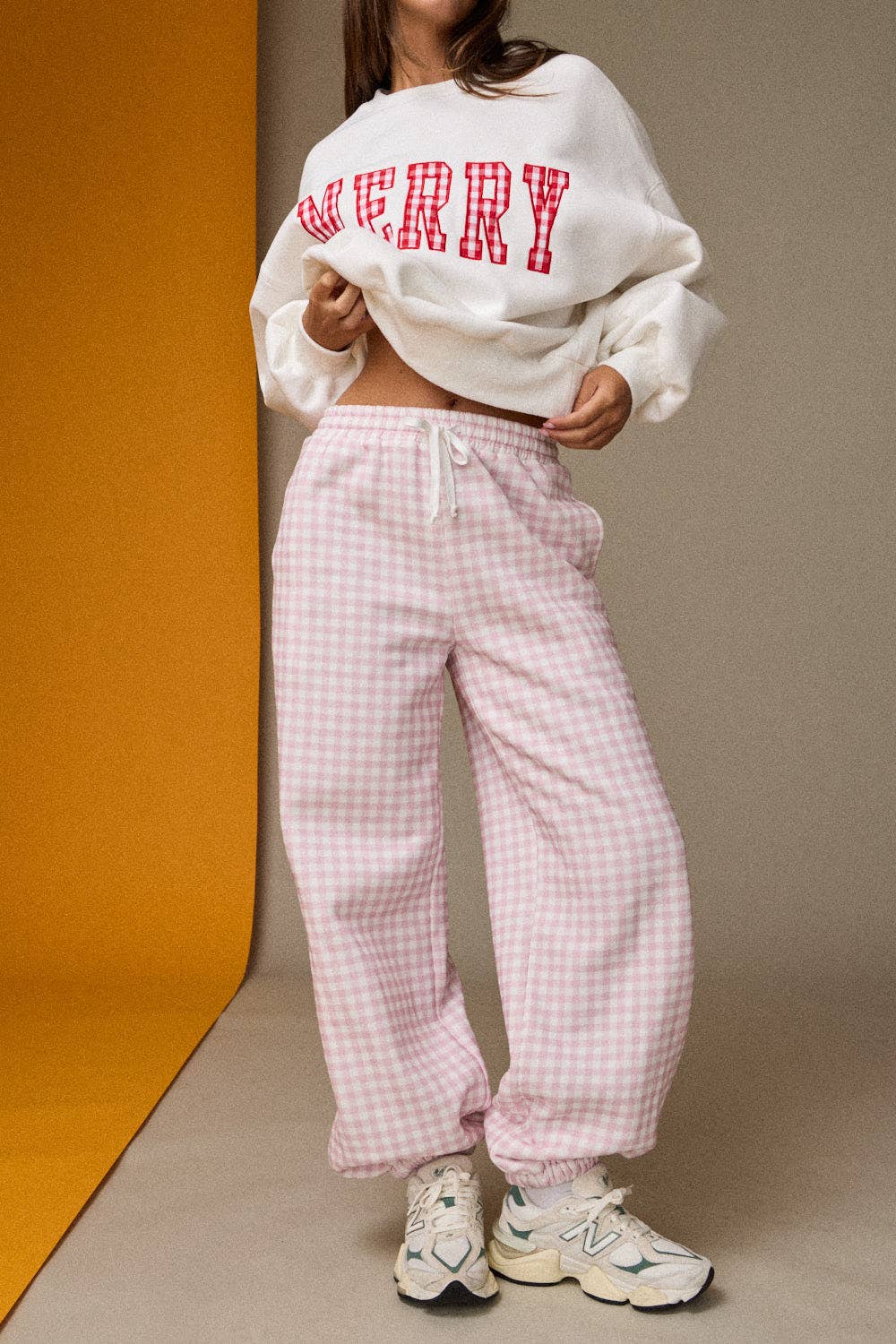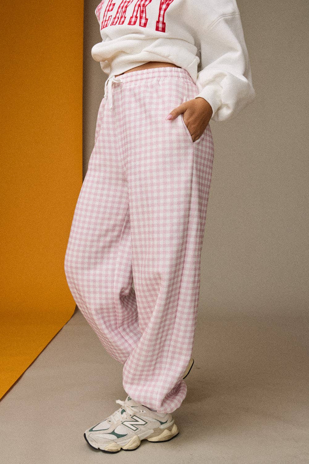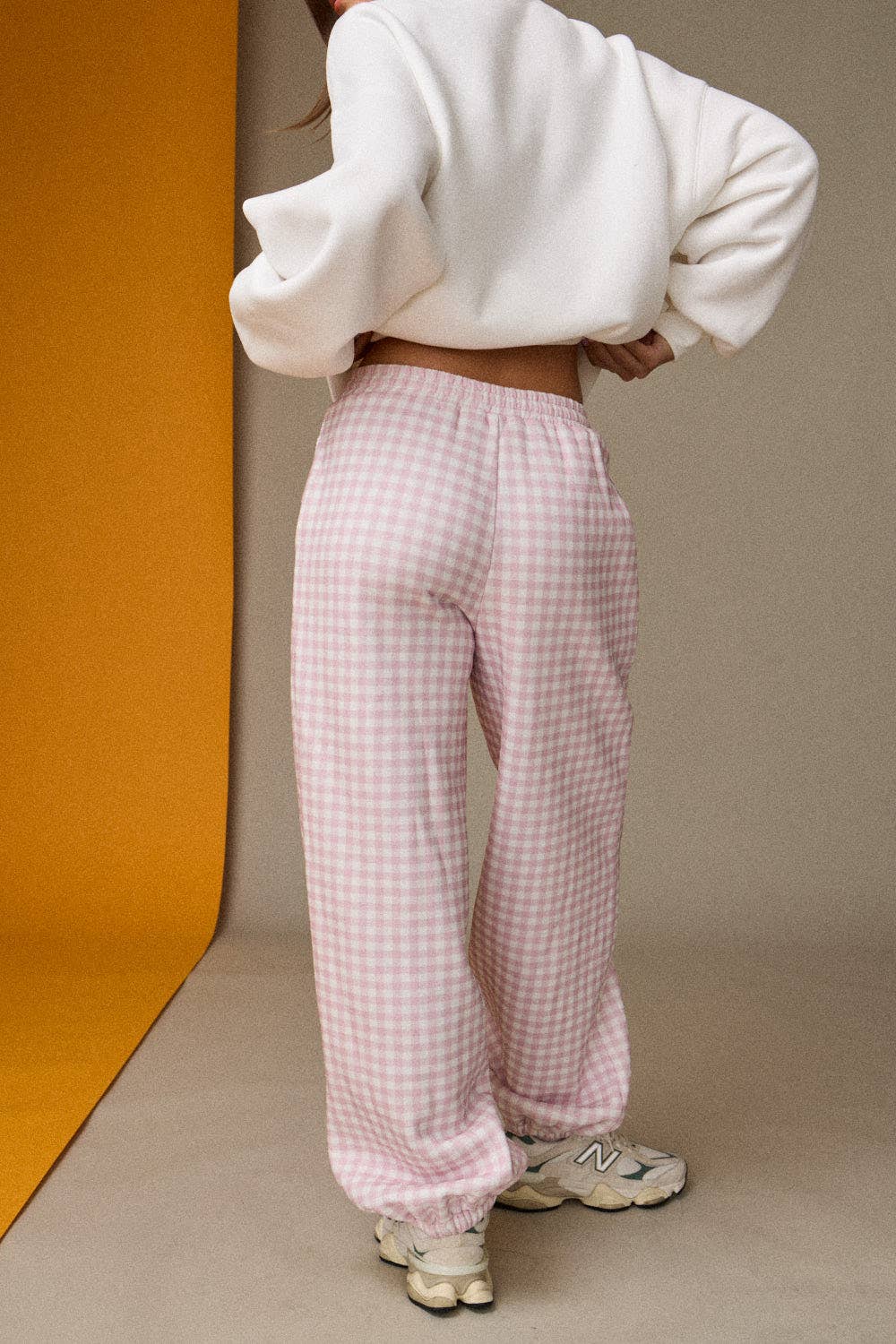 Comfy meets cute in these Gingham Drawstring Joggers, perfect for lounging or stepping out in effortless style. Designed with a relaxed yet flattering fit, they feature an elastic drawstring waistband, gathered ankle cuffs, and handy side pockets for everyday ease. The lightweight, breathable fabric keeps you comfortable all day, while the soft gingham print adds a playful, timeless touch that pairs easily with crop tops, hoodies, or classic tees for laid-back looks at home, on the go, or while traveling.