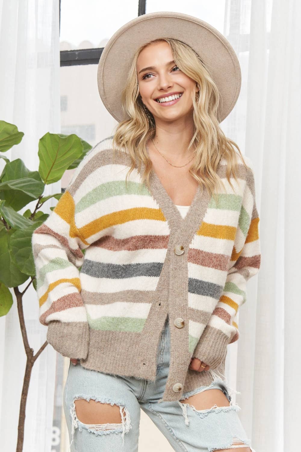 Wrap yourself in cozy elegance with our Winter Sunset Cardigan—a knit button-up v-neck that's as fun to wear as it is flattering. Crafted from a luxurious blend, this sweater offers the perfect balance of softness and stretch for all-day comfort. Layer it over your favorite tee or dress it up for an instant style upgrade. Whether you're sipping cocoa by the fire or heading out for an adventure, this versatile cardigan is your new go-to piece for effortless, chic warmth.