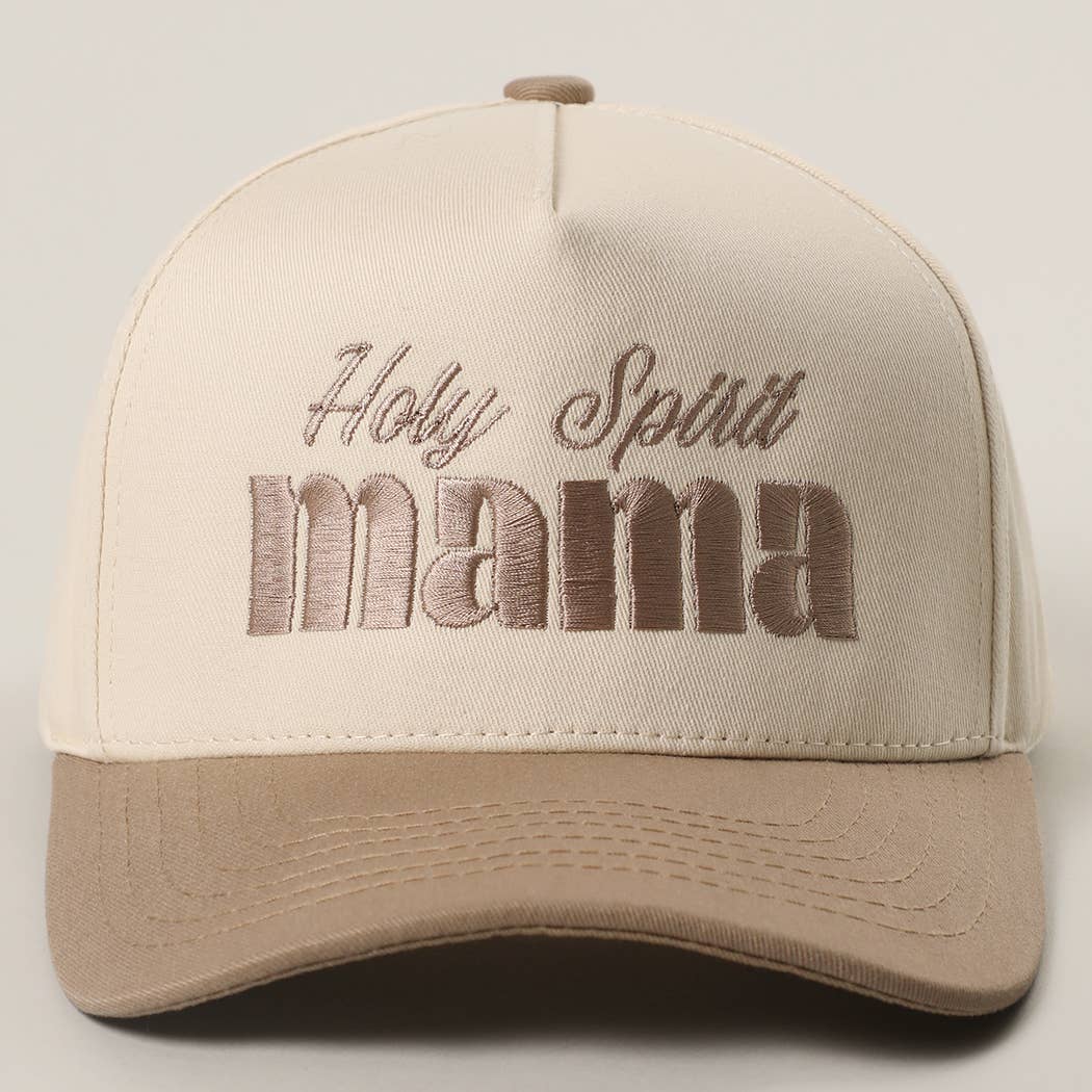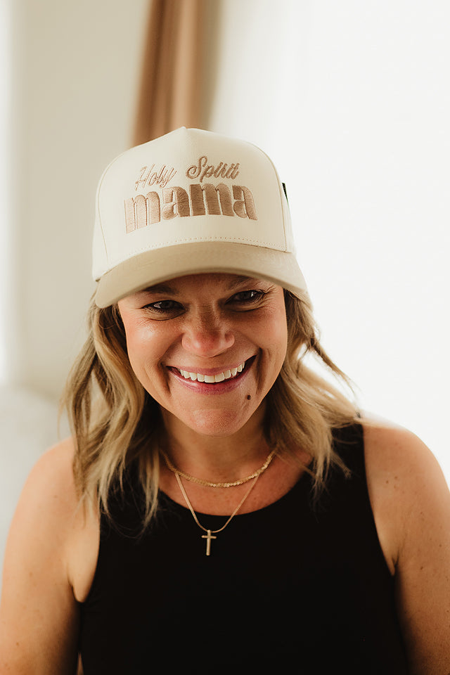 The "HOLY SPIRIT MAMA" Trucker Hat features bold “Holy Spirit Mama” embroidery with a raised, textured finish, paired with neutral-toned panels and statement brims for a faith-inspired, modern Western look. This 5-panel two-tone cap offers durability, breathability, and a structured, classic silhouette. Finished with high-quality embroidery in the USA and an adjustable snapback closure, it provides a comfortable fit for most head sizes. It’s a stylish, dependable cap for everyday wear.
