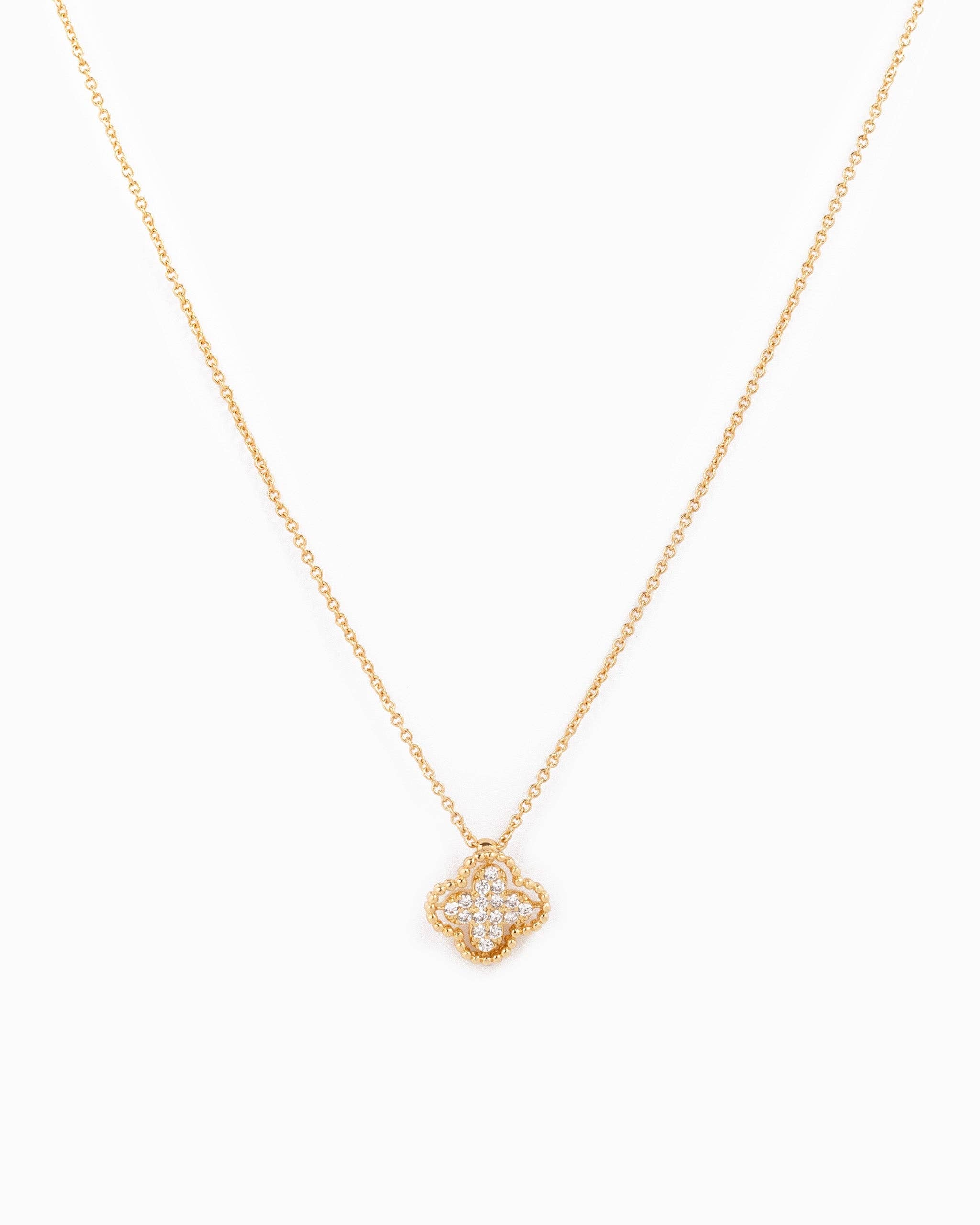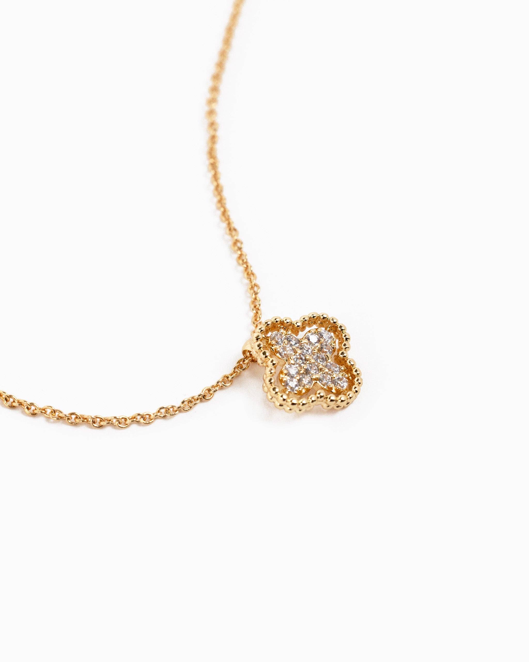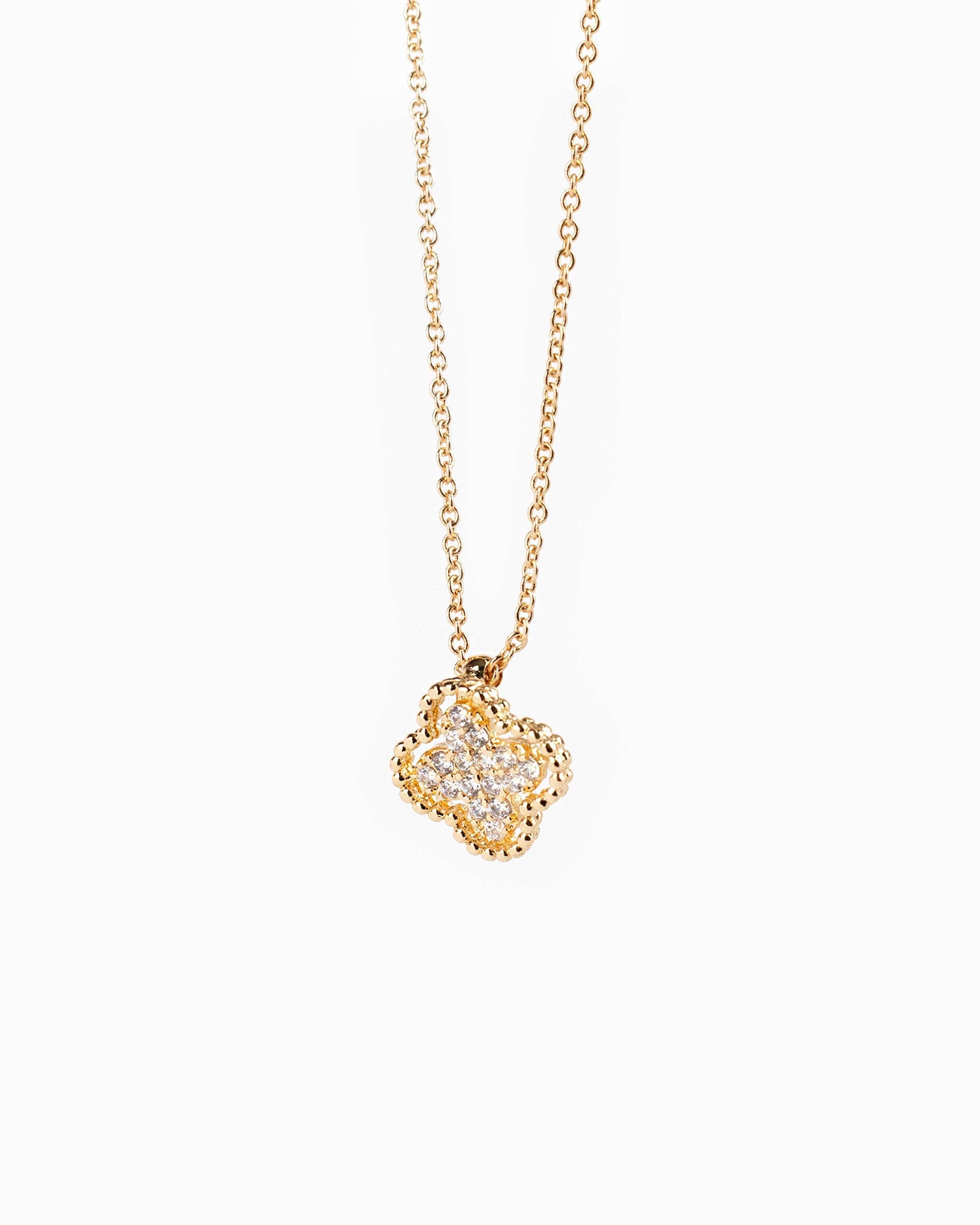 Luck meets luxury with this charming Open Frame Clover Pendant! Featuring a delicate milgrain-edged frame that showcases a stunning CZ pave clover centerpiece, this necklace strikes the perfect balance between elegant and eye-catching. Available in warm gold or cool silver to match your vibe, it's the ideal accessory for layering or wearing solo. At 16 inches with a 12.5x12mm clover, it hits that sweet spot—noticeable without being over the top. Crafted from quality brass with sparkling cubic zirconia, this little lucky charm is ready to become your go-to piece.