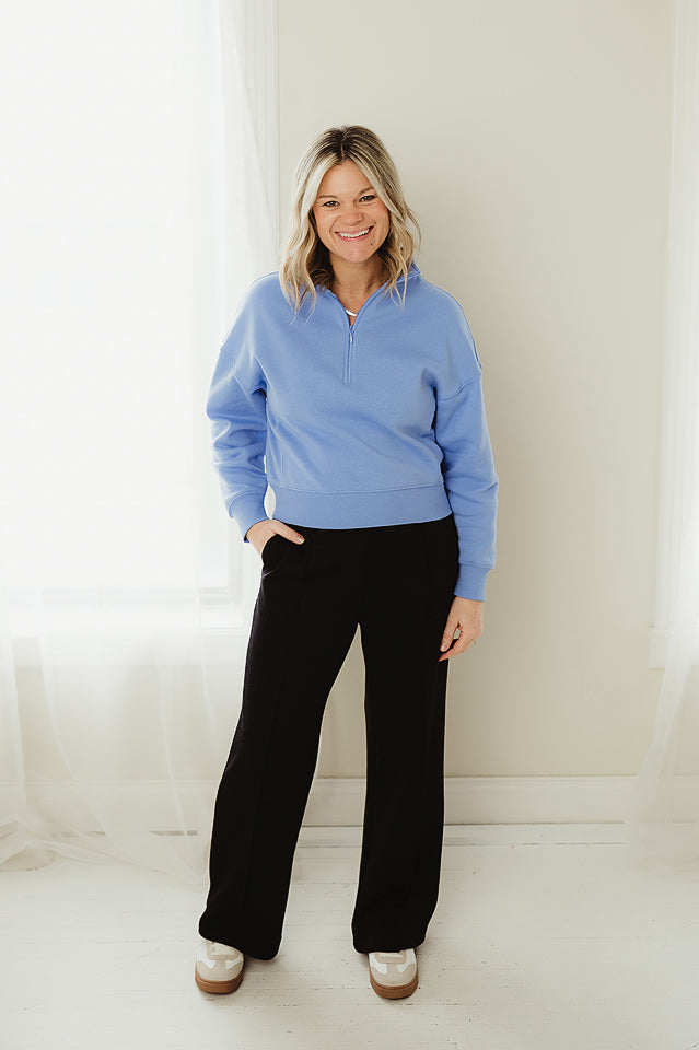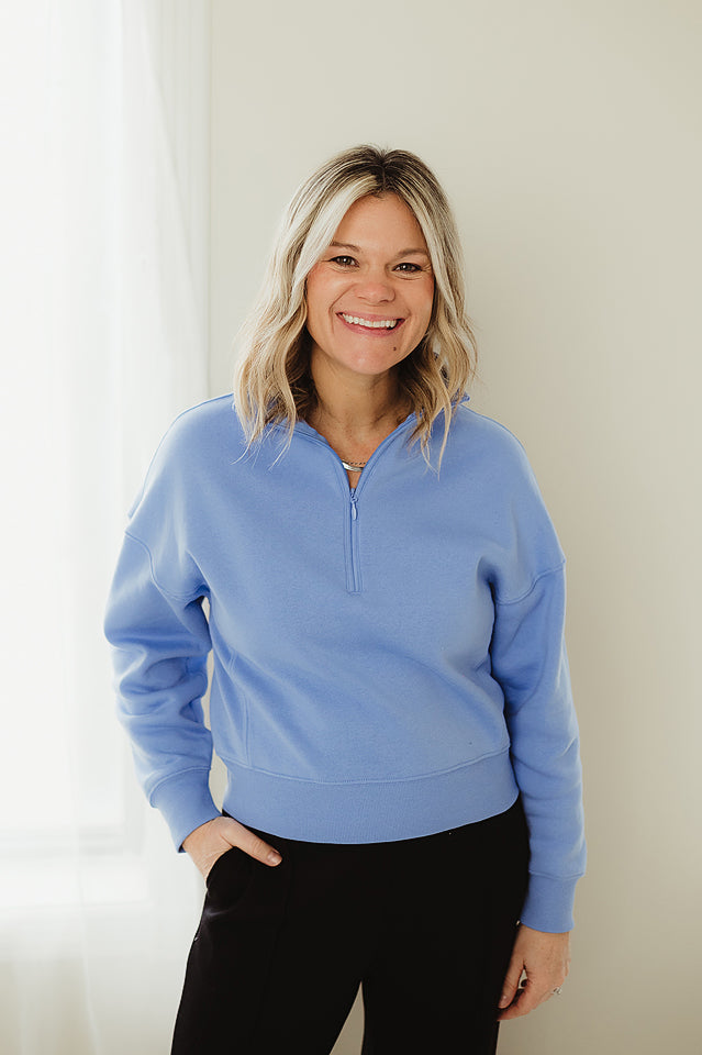 This fleece high neck Weekend Fleece Half Zip combines comfort and style for effortless everyday wear. It features a high neckline with a half zip for adjustable coverage and easy layering. The relaxed fit delivers warmth without bulk, making it perfect for lounging, travel, or casual outings. A versatile staple that pairs easily with everything from denim to joggers, this sweatshirt is designed for all-season comfort.