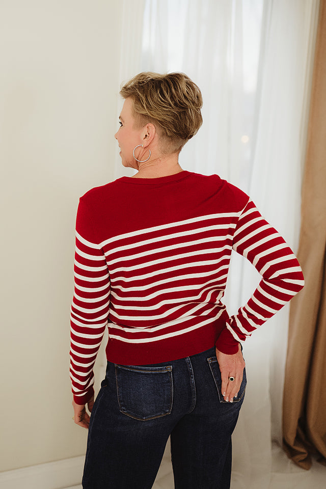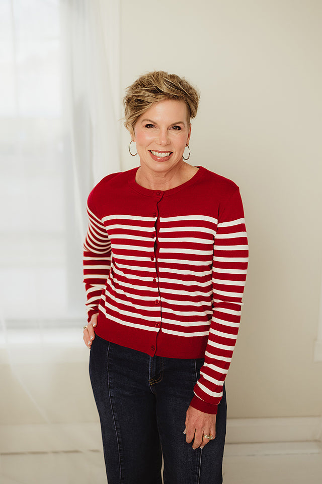 Wrap yourself in cozy charm with the Luxe Lines Cardigan! This playful long-sleeve crew neck sweater features bold stripes crafted from a soft blend. Perfect for layering, it adds a splash of fun and warmth to any outfit while keeping you comfy all day long. Whether you’re lounging or out on the town, this cardigan brings effortless style with a wink.