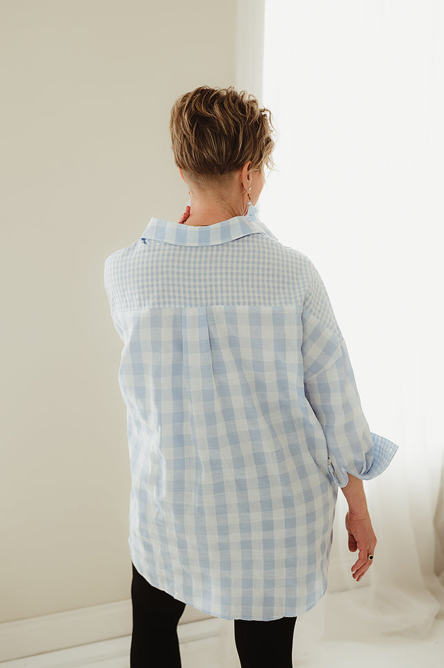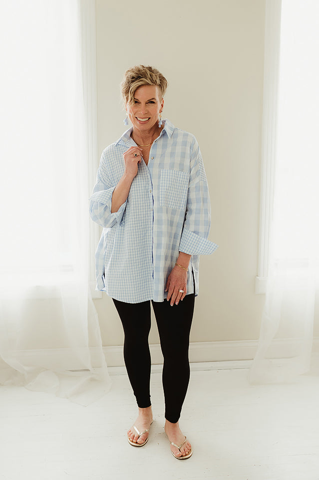 This long sleeve Everyday Plaid Button-Down is designed with contrast detailing for a refined touch. Crafted from non-stretch fabric, it features a classic front button closure and a clean, unlined finish—perfect for polished layering or wearing on its own.