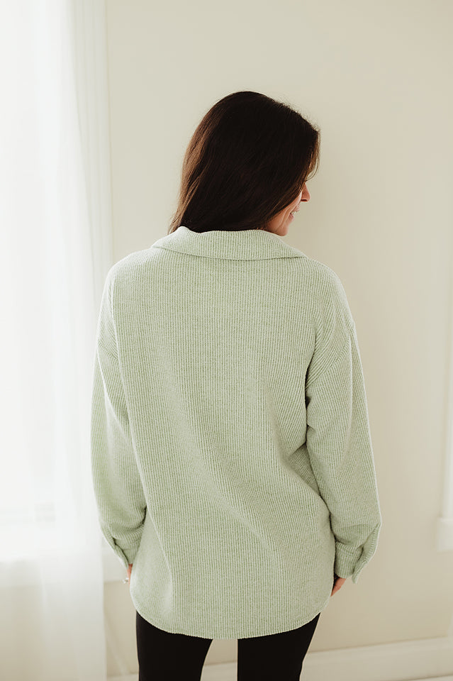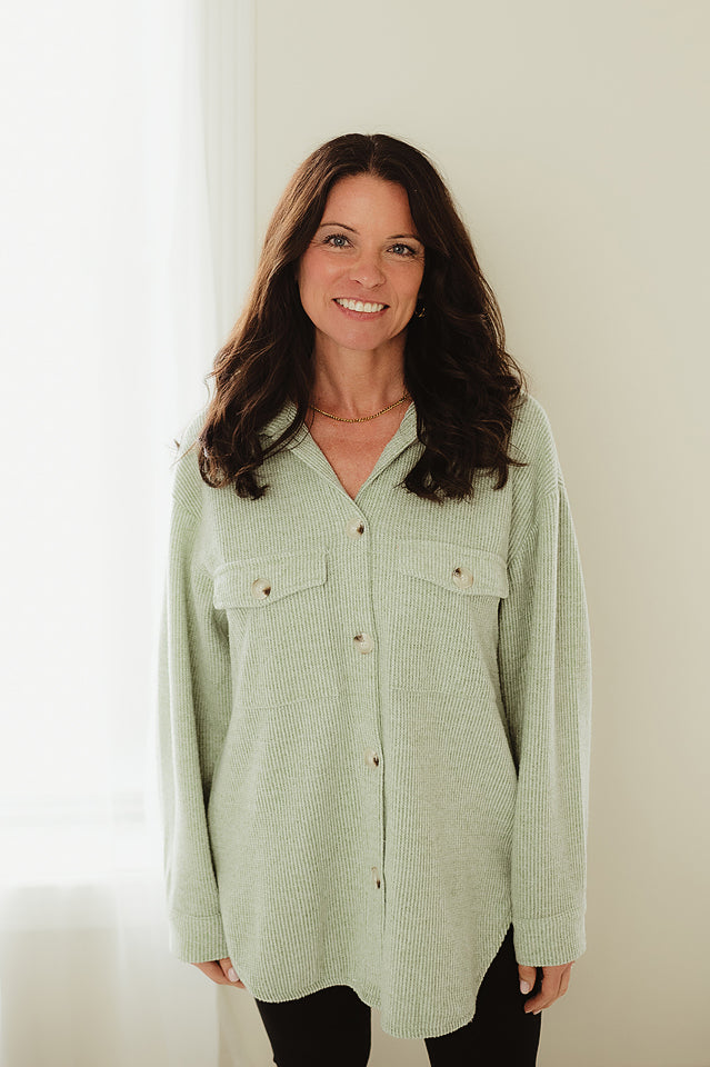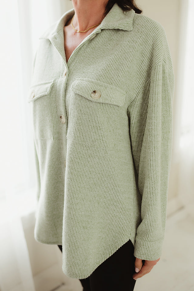 Sage Brushed Waffle Shacket
