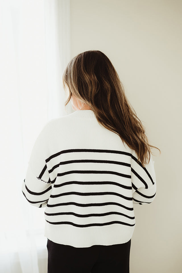 Stay cozy and stylish with the Chic Stripe Sweater! Featuring bold exposed seams and an oversized fit, this striped sweater adds a fun twist to your casual wardrobe. Perfect for layering or chilling out, it’s designed to keep you comfy while turning heads with its unique detailing. Embrace laid-back vibes with a playful edge every time you wear it.
