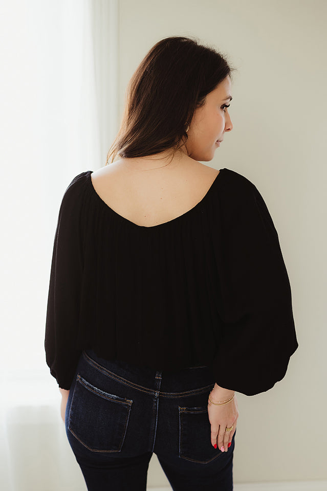 Relaxed Romance Blouse is an off-shoulder top featuring romantic balloon sleeves and elastic bands at the waist and wrists for a flattering, comfortable fit. Made from soft, breathable fabric, it ensures all-day comfort while maintaining a relaxed, feminine silhouette. Dress it up with statement accessories for a night out or keep it casual for an effortless daytime look.