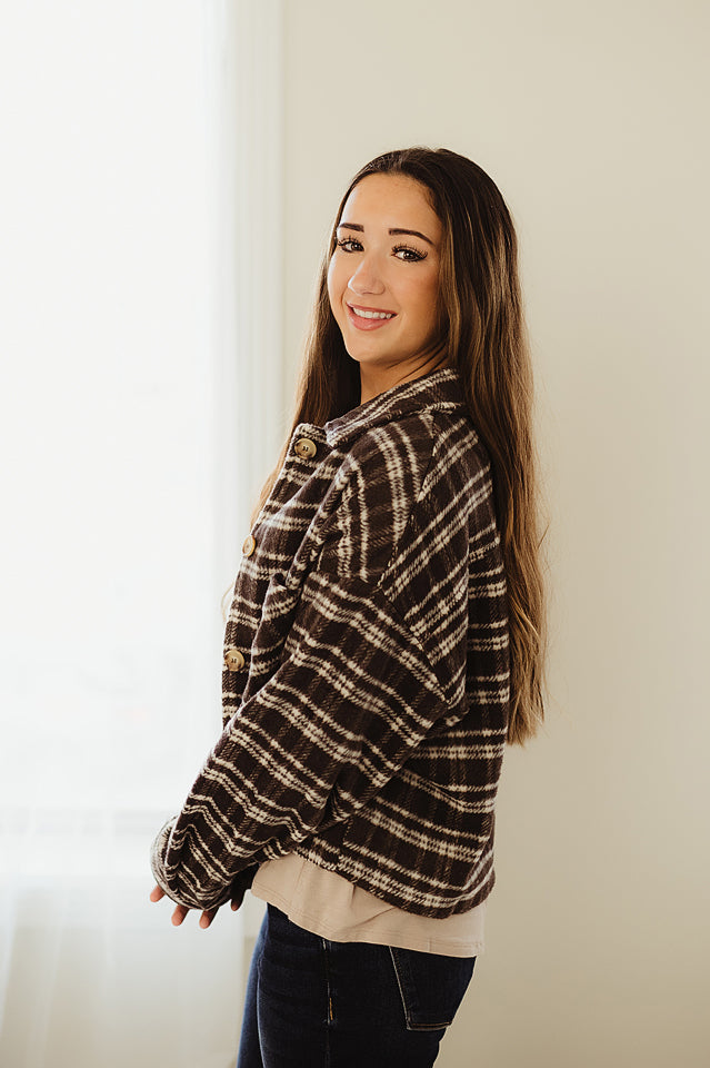 Elevate your wardrobe with this Plaid Avenue Jacket, designed with long sleeves, a stylish collar, and a chic row of buttons for a polished finish. Featuring convenient front pockets, it combines classic sophistication with everyday functionality—perfect for layering in style.