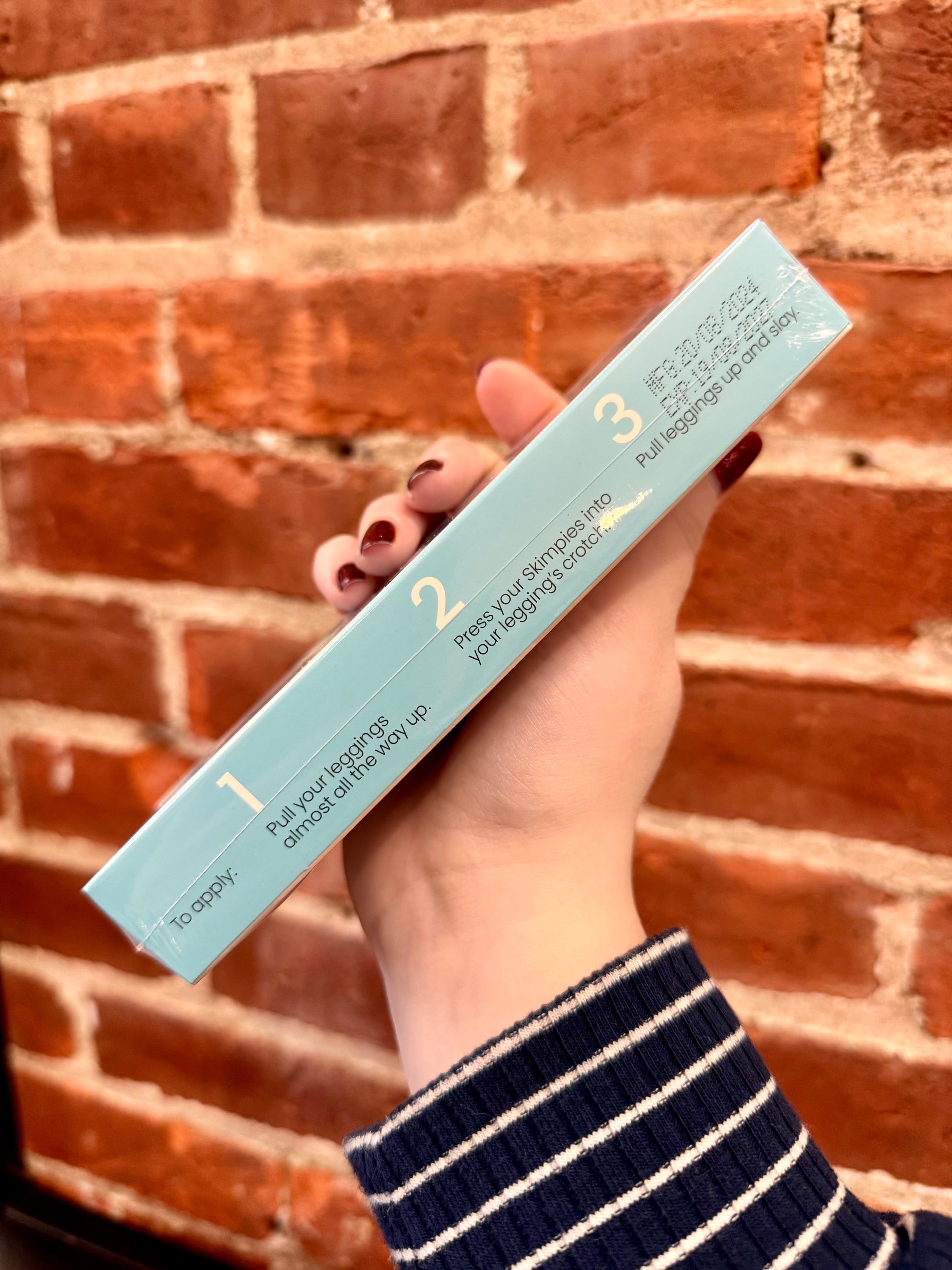 2. Press your Skimpies into your legging’s crotch.