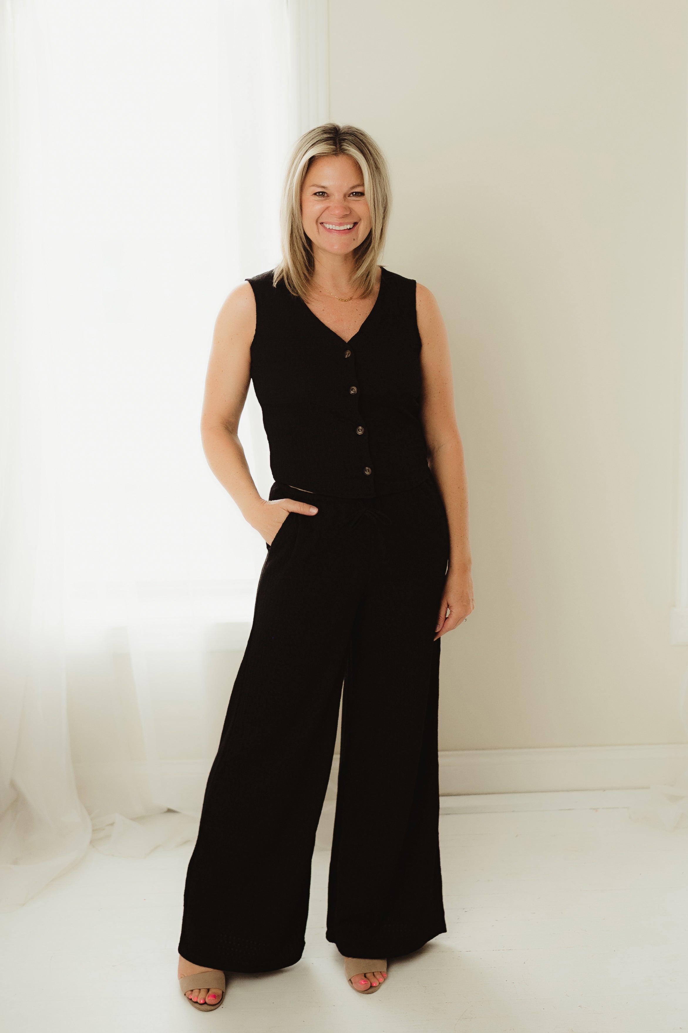 Black Button & Flare Set