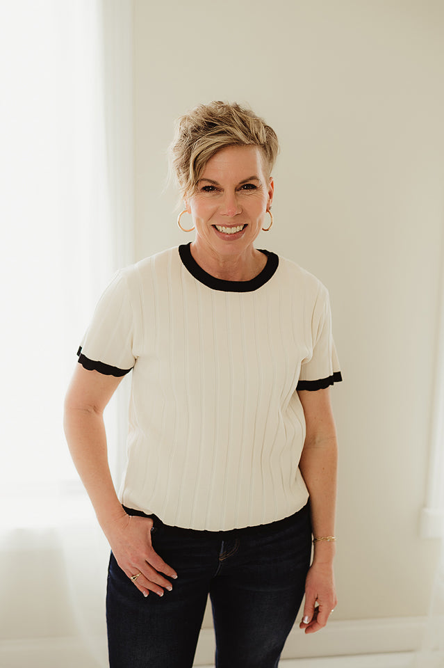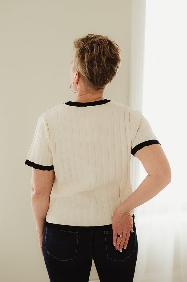 A chic Contrast Scallop Crewneck sweater featuring a timeless neckline and elegant contrast scalloped hems for a subtle statement. Perfectly balanced between classic and modern, it pairs effortlessly with tailored trousers for a sleek, polished finish.