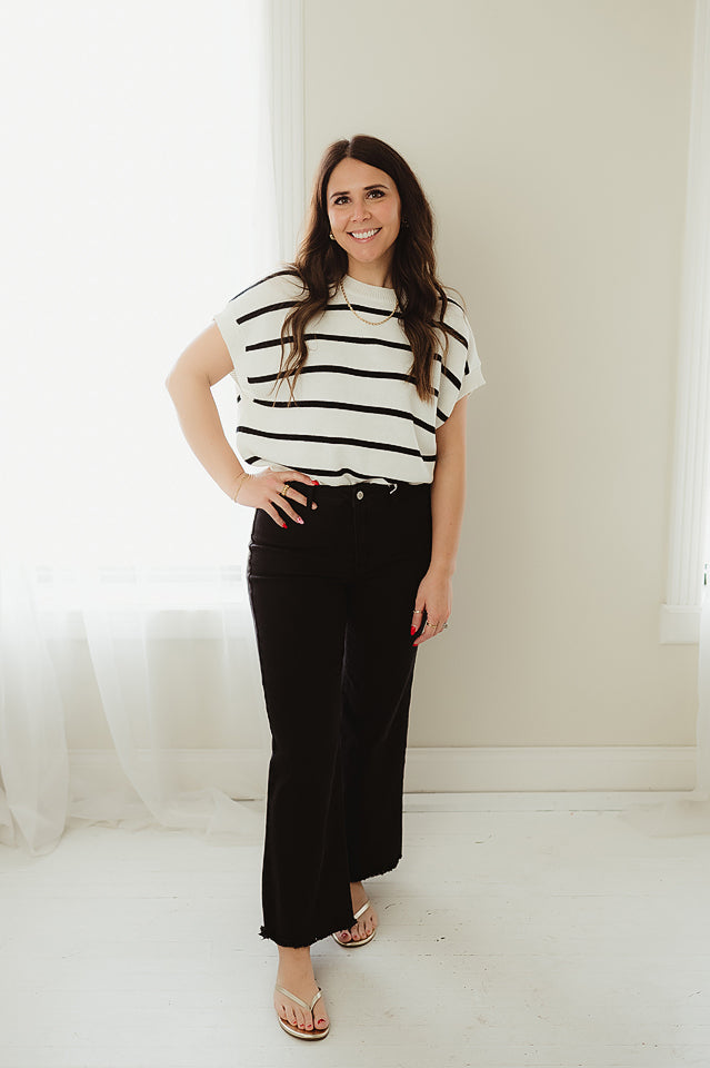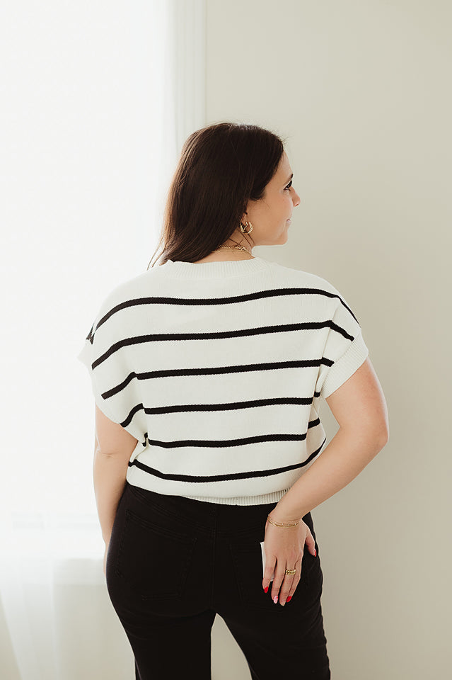 Portside Cap Sleeve Knit offers a nautical look with a modern edge. Crafted from a soft blend, the design features a gentle crew neckline, bold horizontal stripes, a ribbed neckline, and top comfortable, wide dolman cap sleeves with a neat cuff finish. Pair with denim shorts and sneakers for a laidback style that works all season.