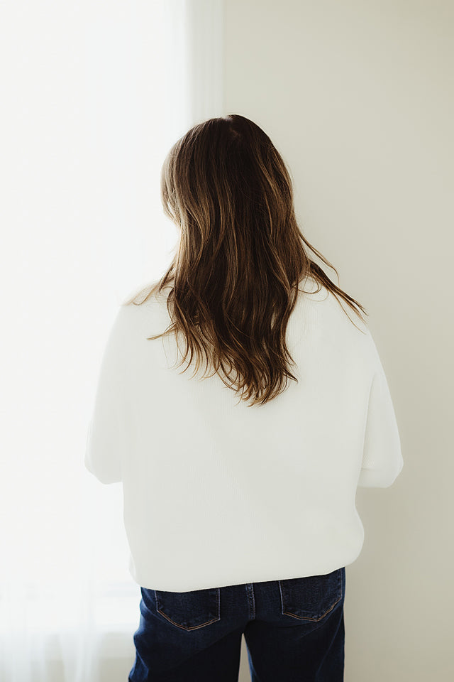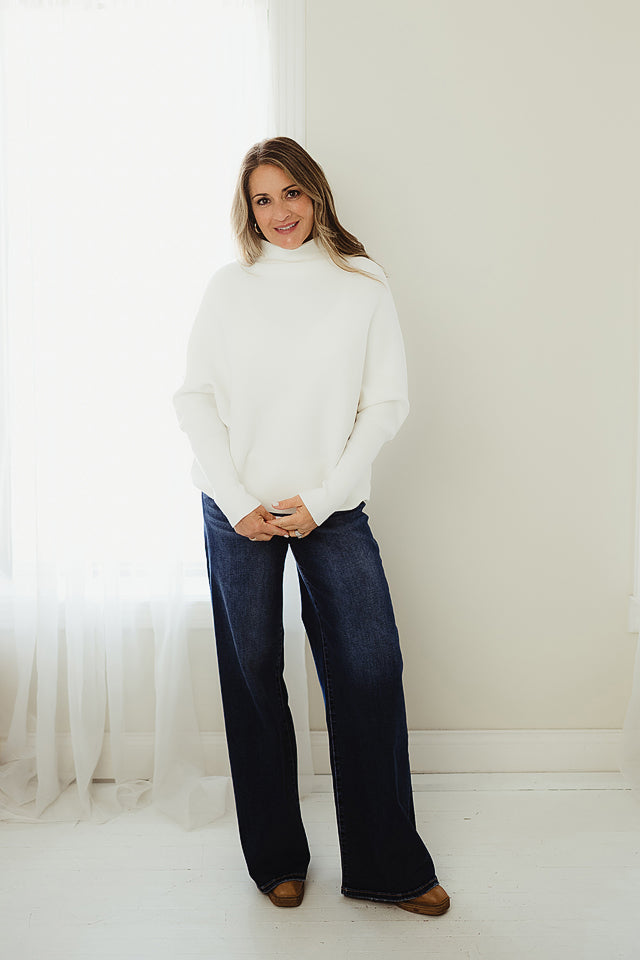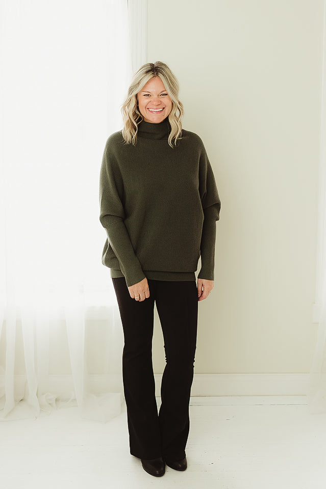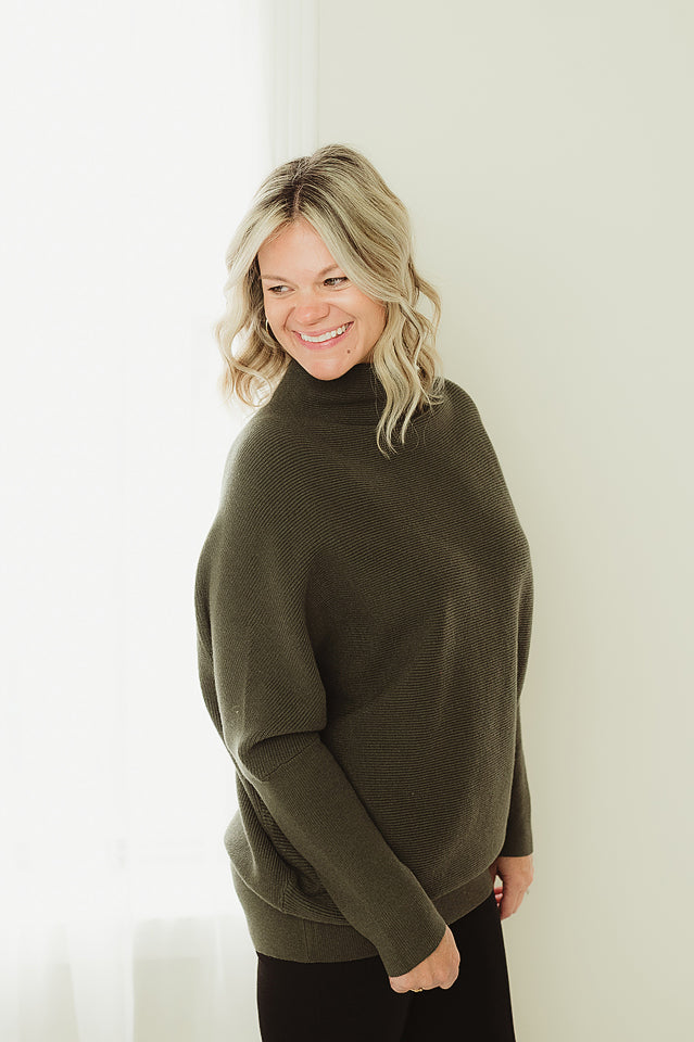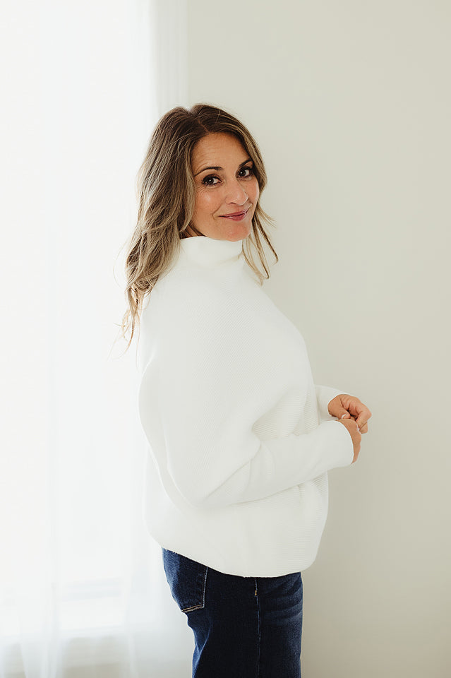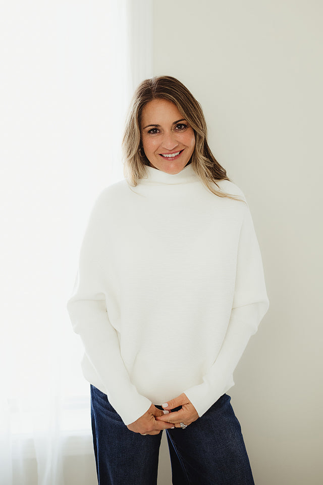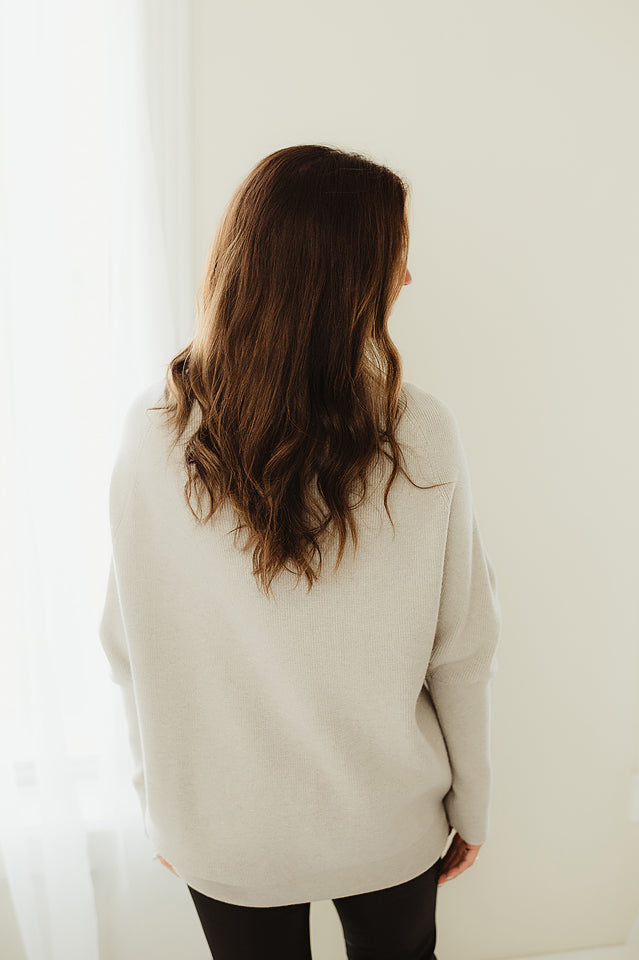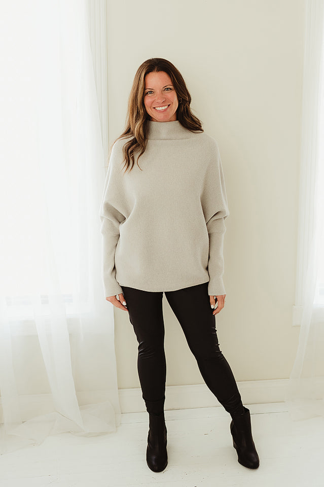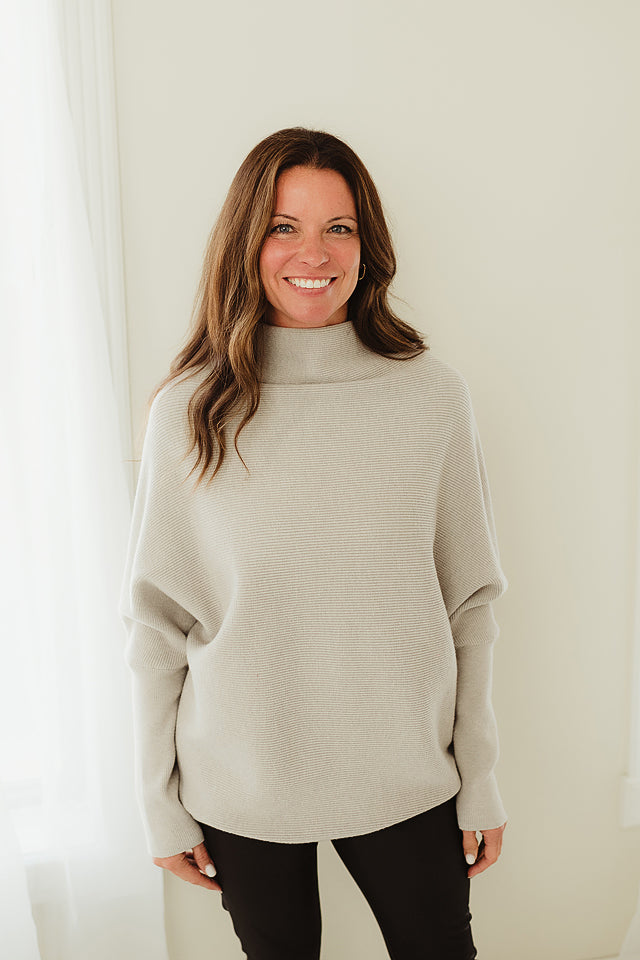 The Haven Sweater will refresh your everyday style. This effortlessly chic dolman sleeve is made from soft, breathable blend, it features a relaxed silhouette with fluid draping and a modern mock neck for subtle sophistication. The dolman sleeves add gentle volume and ease, making it ideal for layering or wearing solo. Whether paired with denim or tailored trousers, this piece offers comfort and polish in equal measure.
