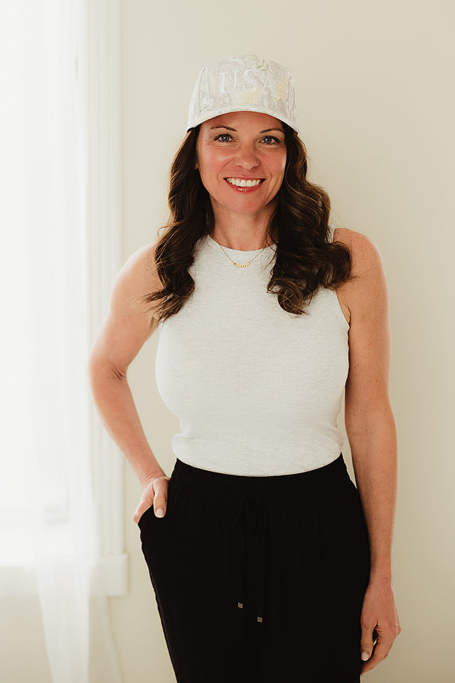 • Tandy is wearing a size M (this is a fitted tank)