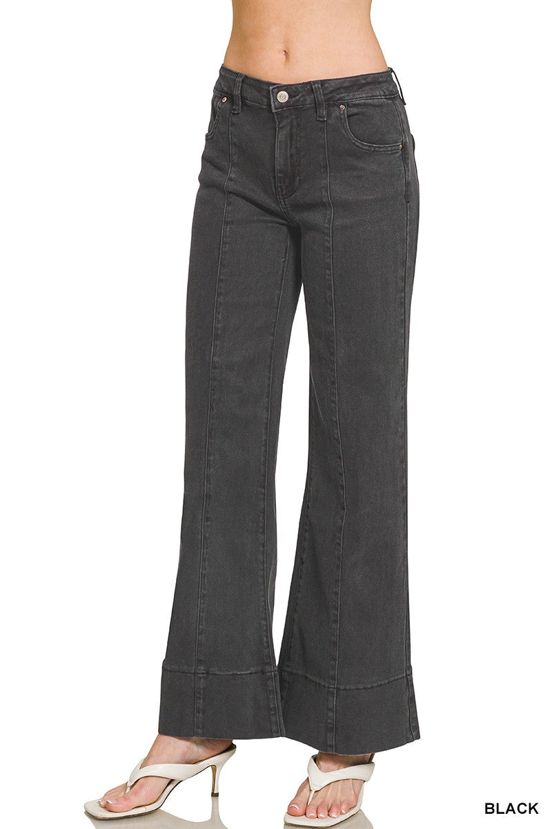 These Front Seam Wide Leg Denim bring easy sophistication to your everyday style. Designed with a flattering mid‑rise waist and a relaxed wide‑leg silhouette, they feature a clean front seam that elongates the legs and adds a polished touch. The soft, durable denim and cuffed hem create a modern, versatile look that pairs effortlessly with fitted tops, knits, or sandals.