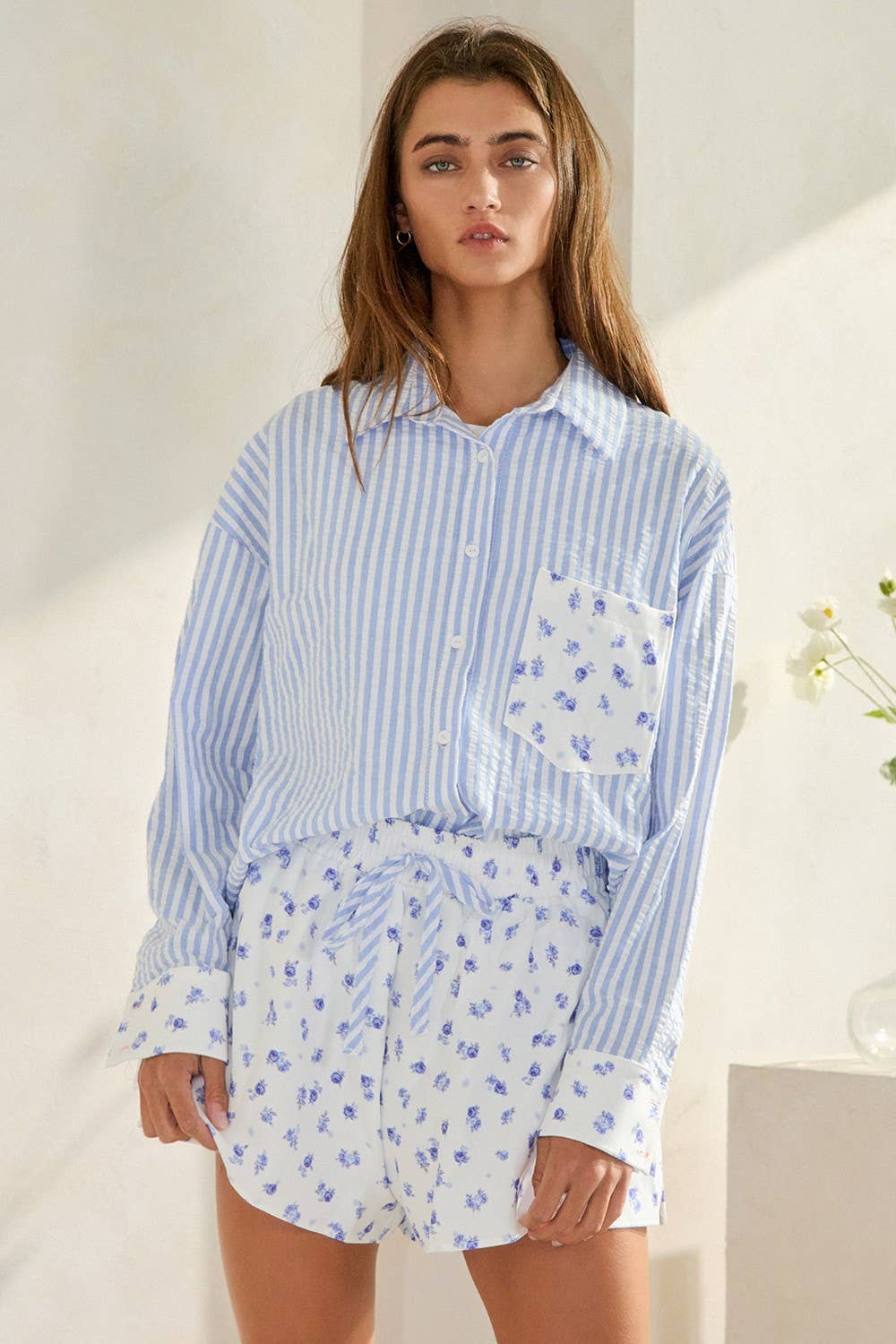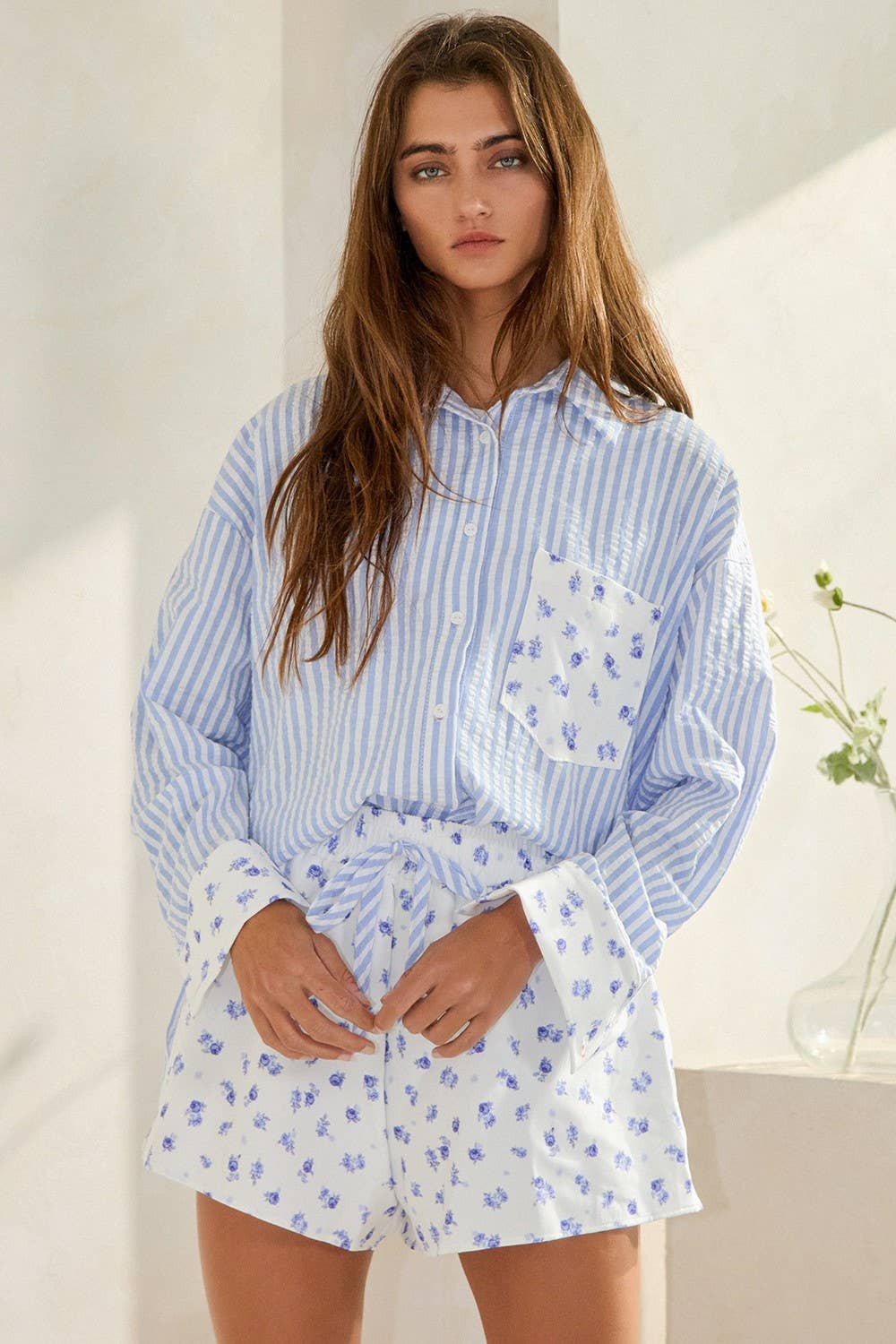 Step into spring style with our Bloom Shorts, where cheerful florals meet effortless comfort. These woven shorts feature a vibrant floral print that brings garden-fresh charm to your everyday look. The elastic waistband ensures a relaxed fit that moves with you, while the contrast self-tie detail adds a playful finishing touch. Perfect for warm weather adventures, casual outings, or lazy weekend days—these shorts are your new go-to for laid-back style with personality.