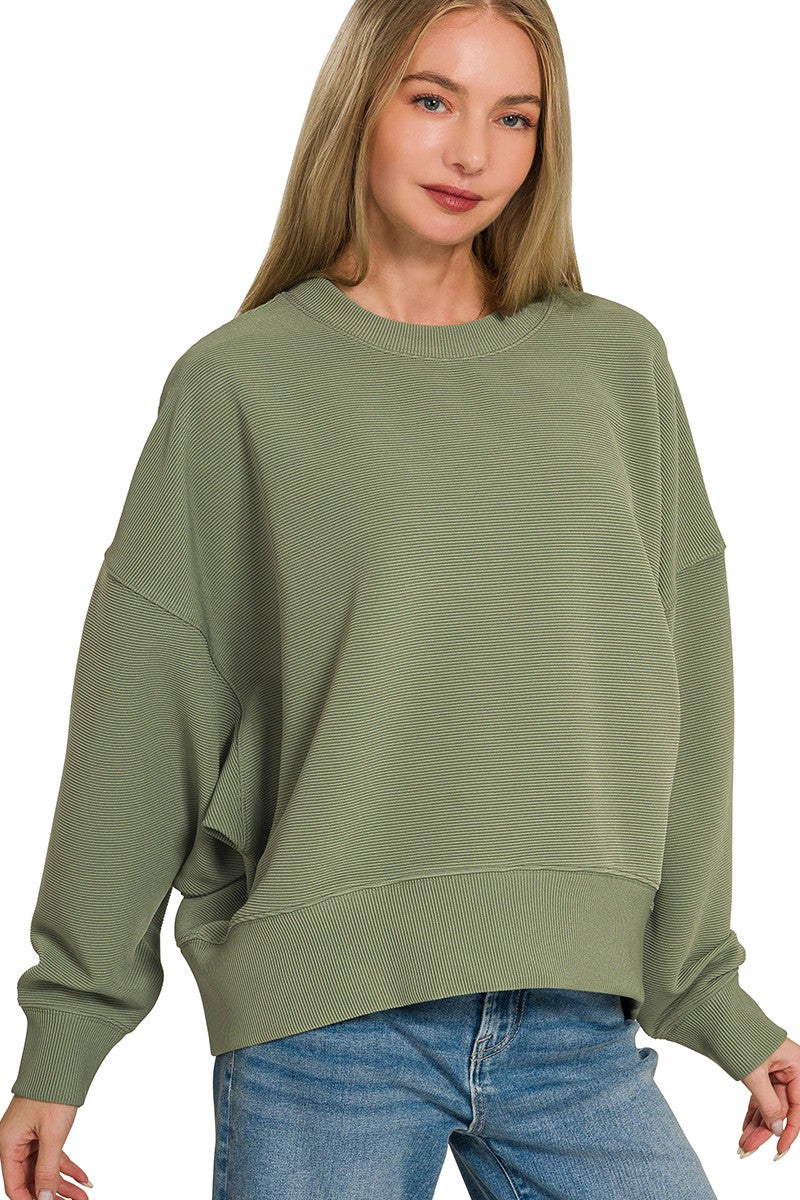 Olive Ribbed Ease Pullover