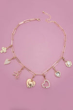 Multi Charm Necklace, this versatile piece features a stunning combination of bow and heart charms that can be rearranged or removed to suit your style. Crafted for both elegance and customization, this necklace allows you to create a new look every time you wear it. Perfect for layering or as a statement piece,
