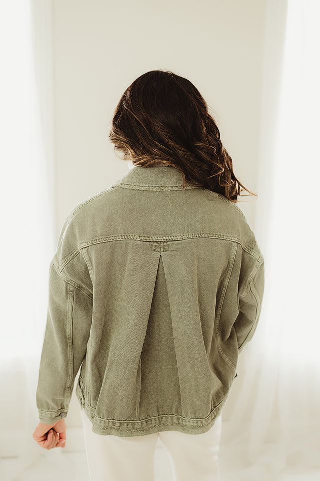 Step into effortless style with the Boxy Bloom Jacket! This oversized denim jacket features a playful pleated back detail that adds a fun twist to your everyday look. Its roomy fit lets you layer comfortably while keeping things cool and casual. Perfect for those who love a little extra flair with their classic denim.