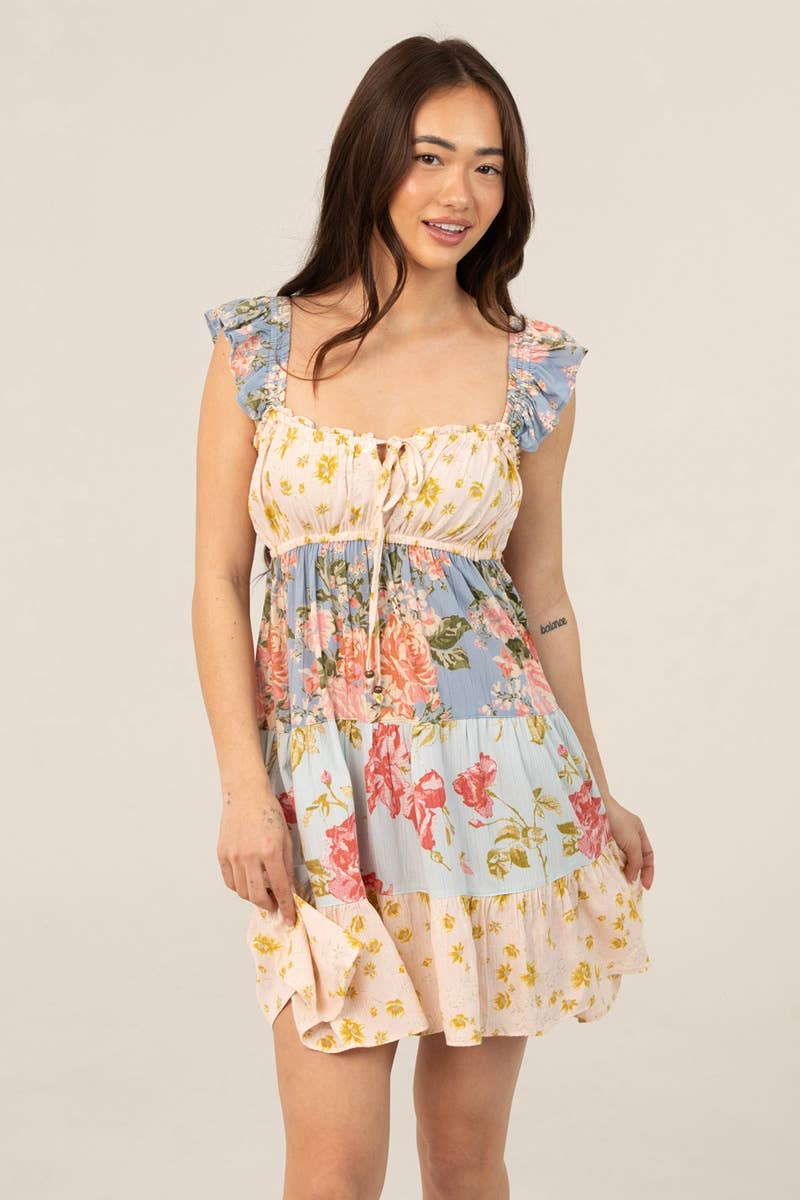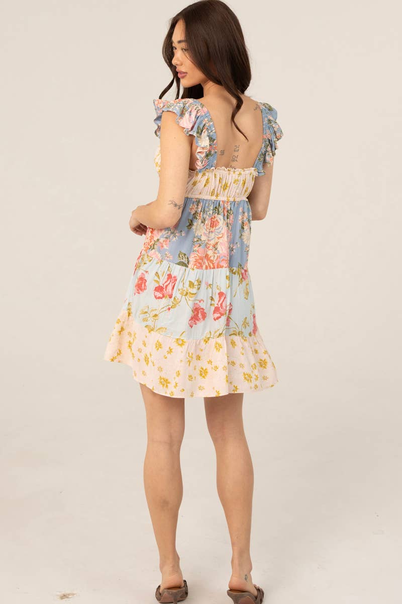 Float through your day in the Boho Bliss Flutter Dress, a breezy silhouette designed to turn heads. Featuring an artful blend of complementary prints, this lightweight dress is styled with soft flutter details at the shoulders and a sleeveless cut for an airy feel. The tiered skirt adds playful movement and flattering dimension, while the short length keeps the look fresh and versatile. Perfect for brunch dates, weekend getaways, or sunny celebrations—just add your favorite sandals or wedges to complete the look.