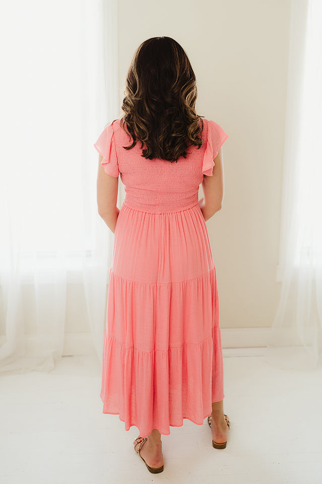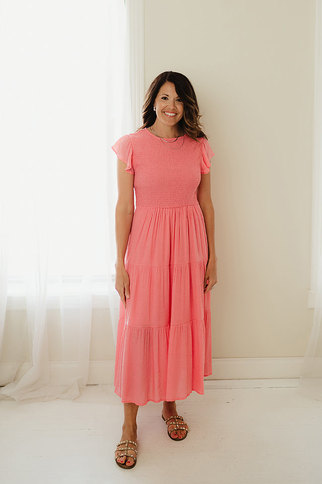 Be effortlessly chic in our Solid Tired Dress. Featuring ruffled sleeves, a crew neck, and smocked detailing, this dress is perfect for any occasion. The tiered design adds a fun touch to the classic fabric blend. You'll love the softness and comfort and still be able to dress to impress!