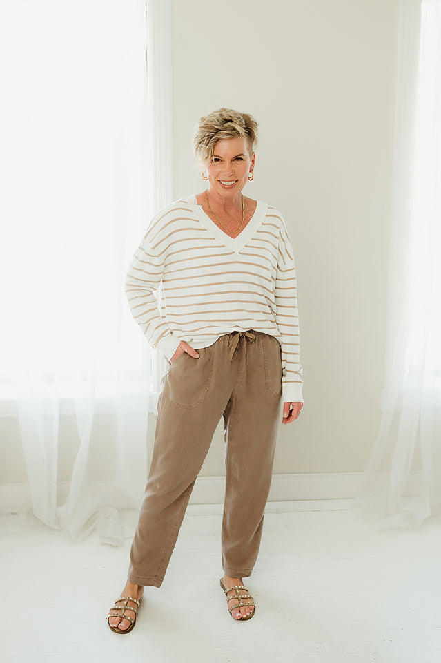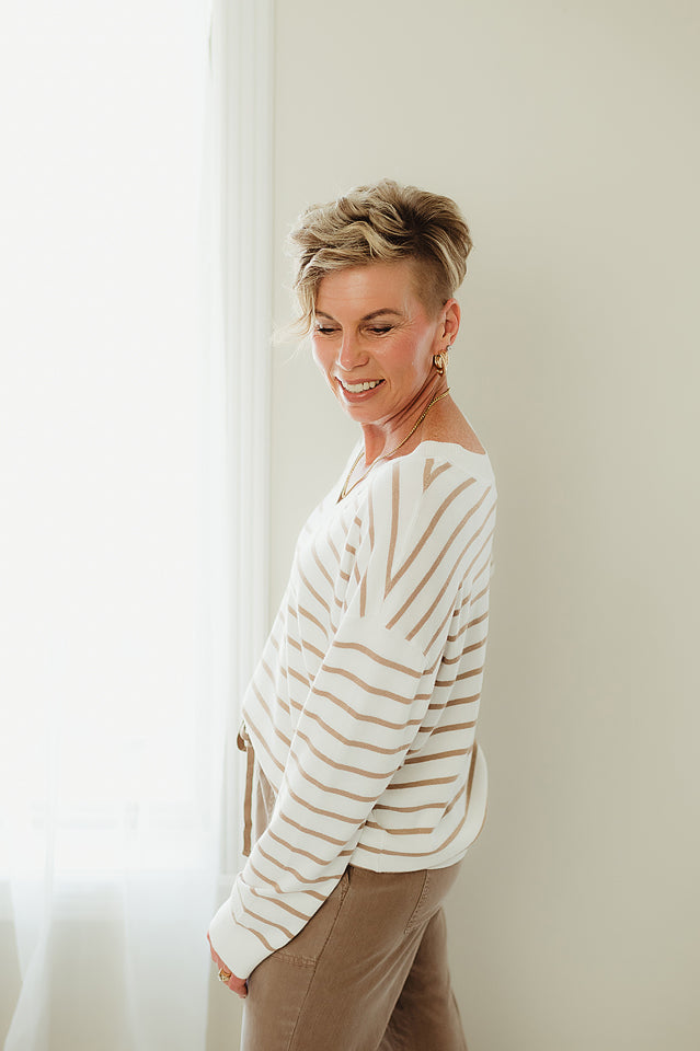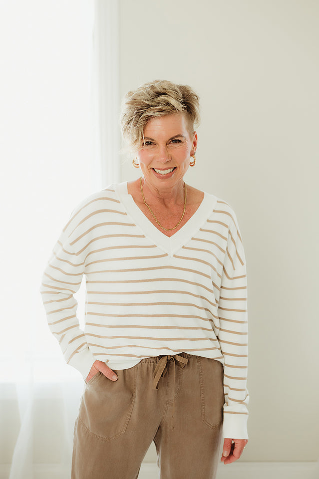 This Heartland Stripe Sweater brings a fun twist to your wardrobe with its playful striped pattern and lightweight feel. The vibrant accent colors at the neckline, cuffs, and hemline add a cheerful pop, making it perfect for layering on breezy days or brightening up your casual look. Cozy yet breathable, it’s designed to keep you comfortable while turning heads wherever you go.