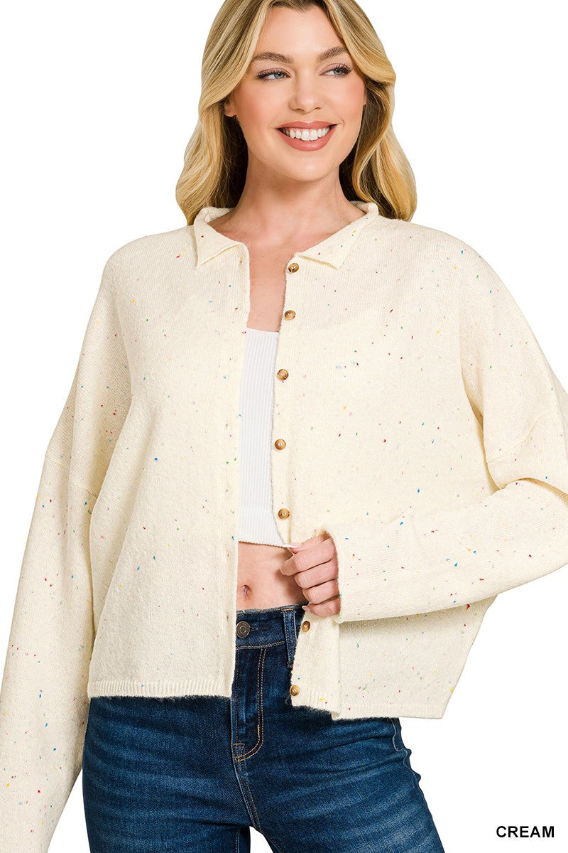 Stay effortlessly polished with this Poised Collared Cardigan. Crafted in a soft, cozy knit, it features a classic collar, full button-front closure, and a relaxed yet refined fit. Perfect for layering over tees, blouses, or dresses, this versatile cardigan adds a touch of sophistication to any outfit while keeping you comfortably warm. A timeless wardrobe essential for year-round style.