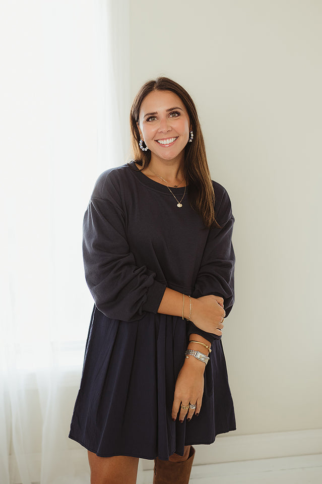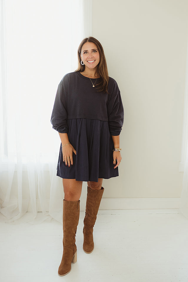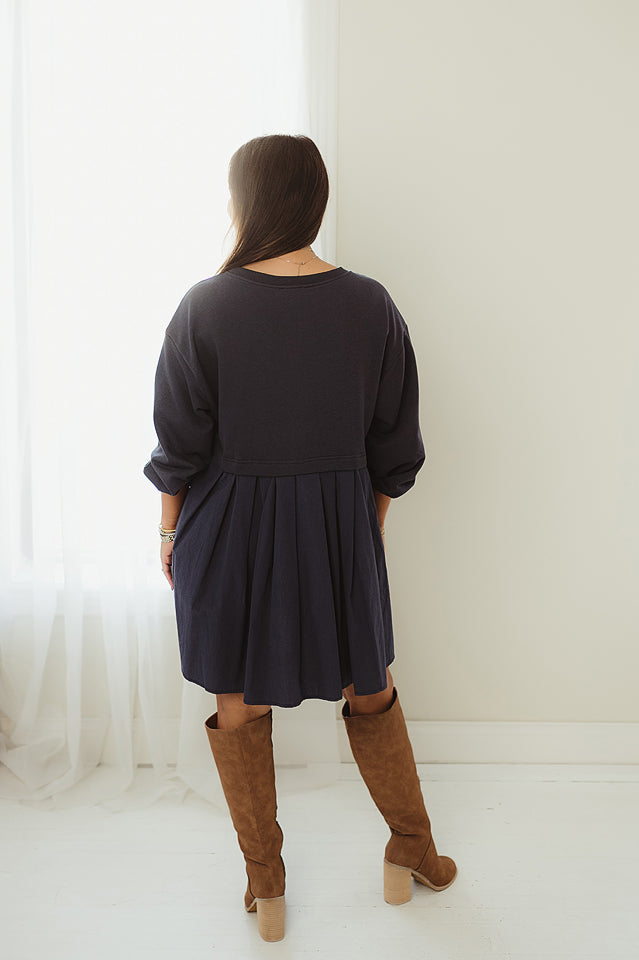 Step into playful elegance with the Metro Grace Dress. Crafted from soft French terry knit, this long-sleeve dress features charming pleats and a fun contrast detail that adds a pop of personality. Comfortable yet chic, it’s perfect for days when you want to feel effortlessly stylish while embracing a unique twist. Whether out for brunch or a casual evening, this dress brings a delightful mix of cozy and flirty to your wardrobe.