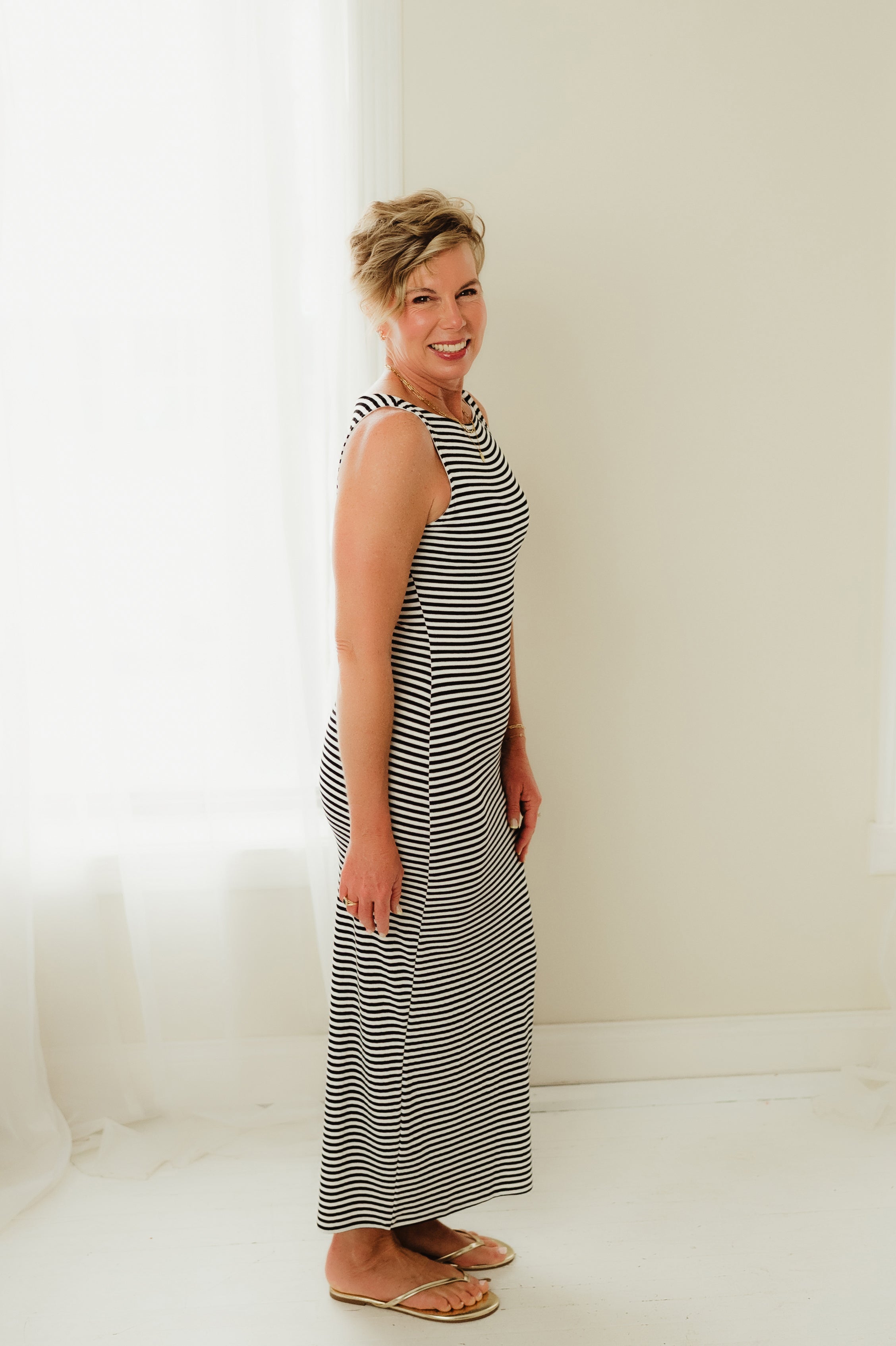 Black & White Midtown Stripe Midi