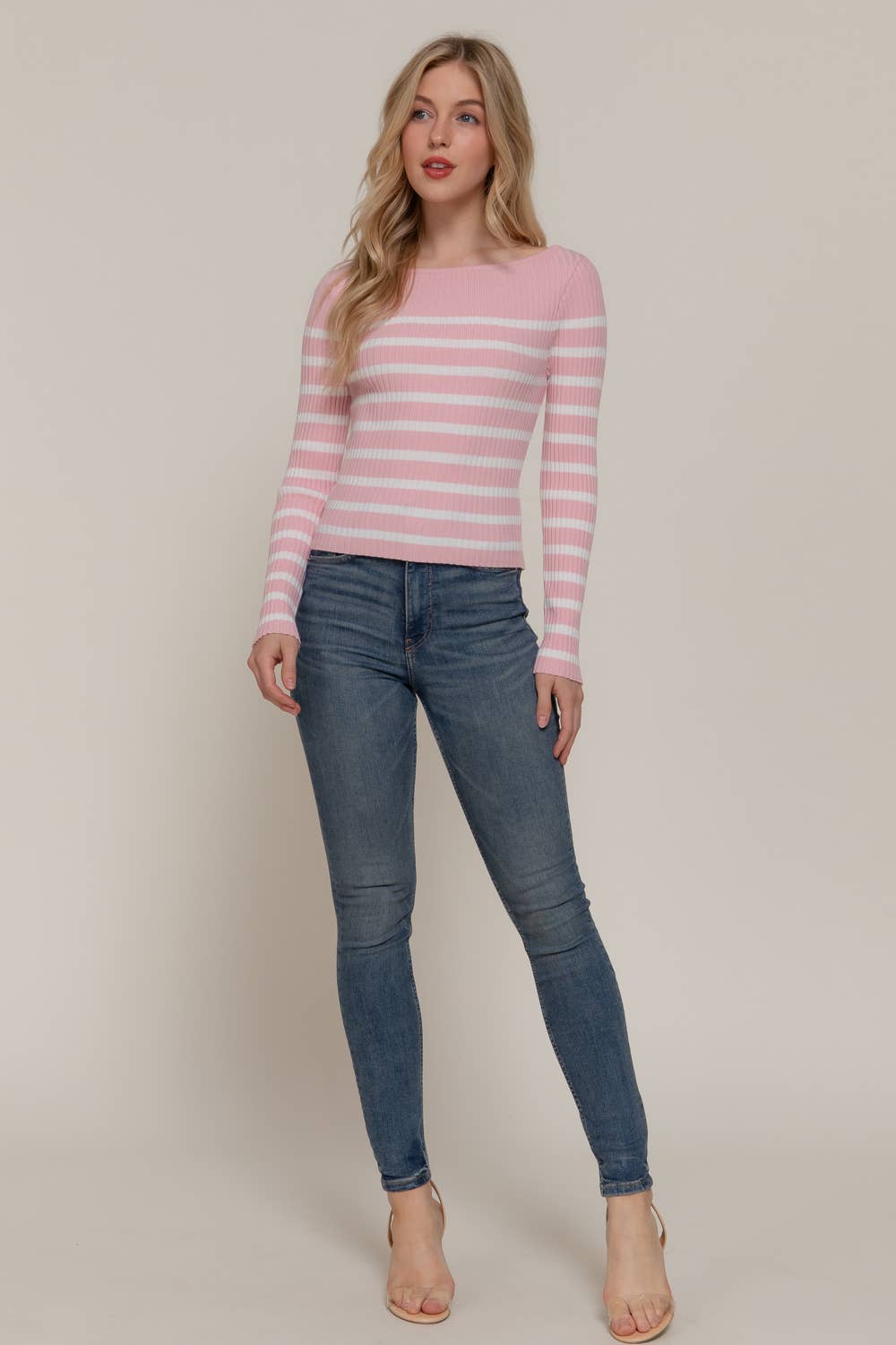 Sail into style with the Pink Coast Stripe Sweater, a breezy long sleeve boat neck design that's perfect for layering or wearing solo. Crafted from a luxurious blend, this striped sweater offers a soft, breathable feel with just the right amount of stretch and durability. The classic boat neckline flatters every frame, while the timeless stripe pattern adds visual interest to your everyday wardrobe. Whether you're heading to brunch or a casual night out, this versatile piece transitions seamlessly from season to season.