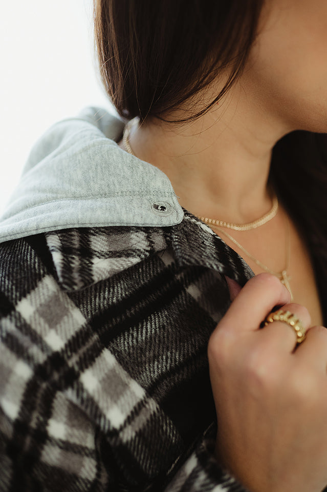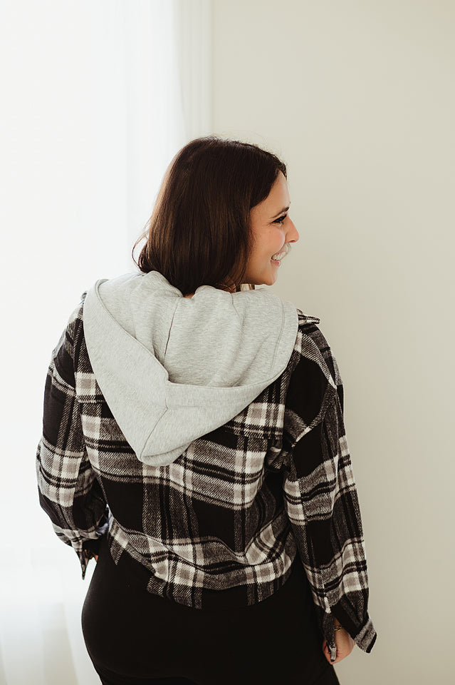 The perfect blend of cozy and casual, the Ella Plaid Hooded Shacket with a detachable hood is a must-have layering piece for the season. It features a classic button-up front, two functional chest pockets, and a relaxed fit that’s easy to style. Wear it with the hood for a laid-back, sporty vibe or remove it for a timeless plaid jacket look—versatile, comfortable, and effortlessly cool.