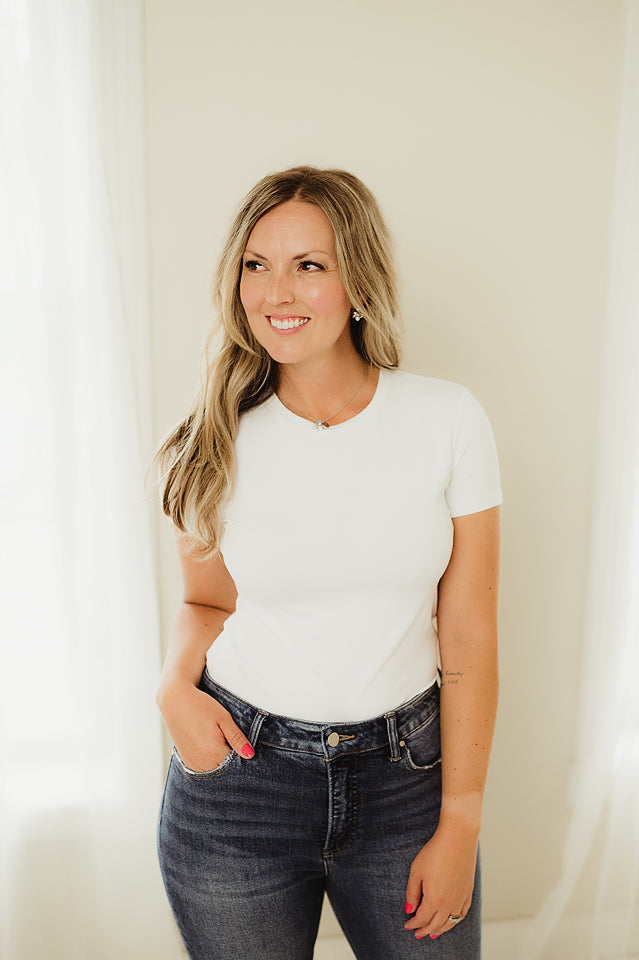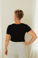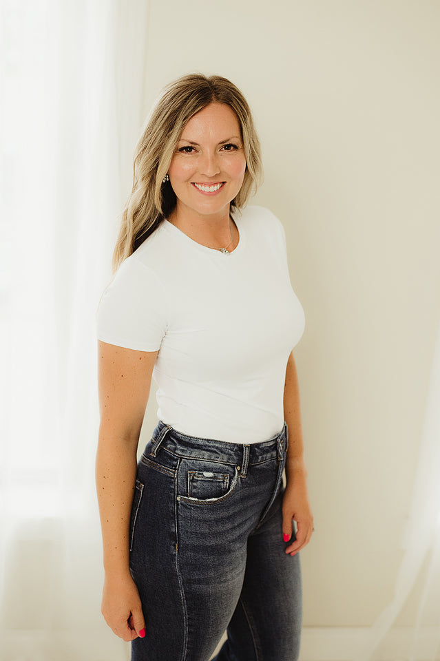 The fitted Smooth Essence Top is your new go-to for effortless style and comfort. Made from a soft knit blend, this short sleeve, round neck top moves with you all day long. Perfect for layering or wearing solo, it adds a playful touch to any outfit with its smooth, stretchy fabric.