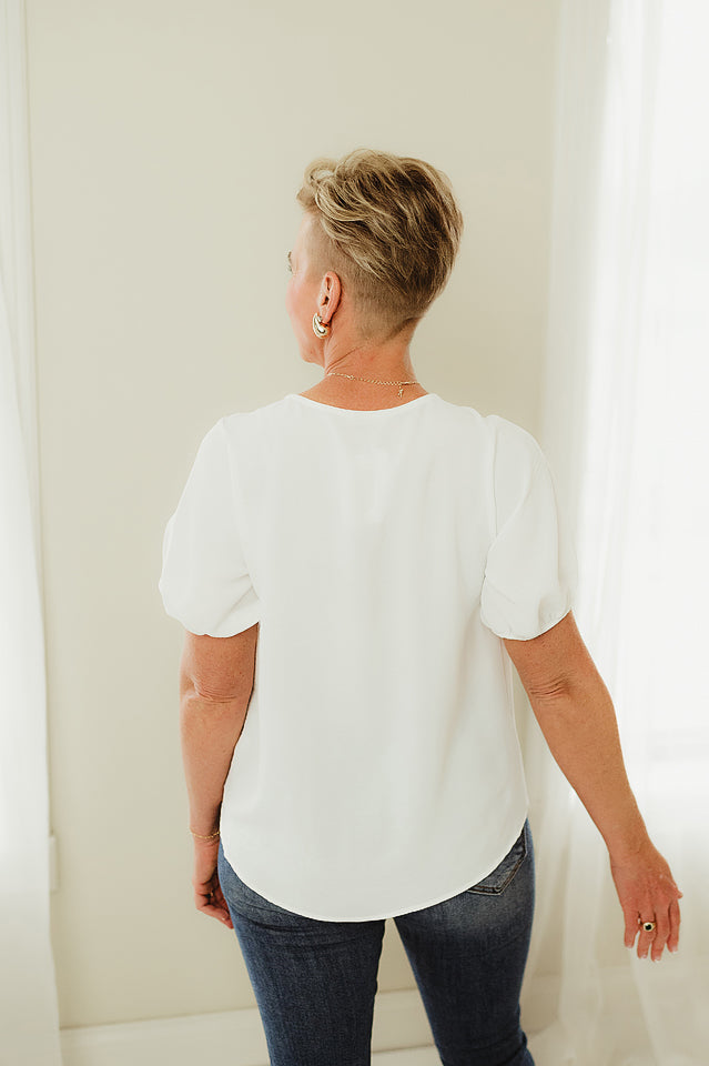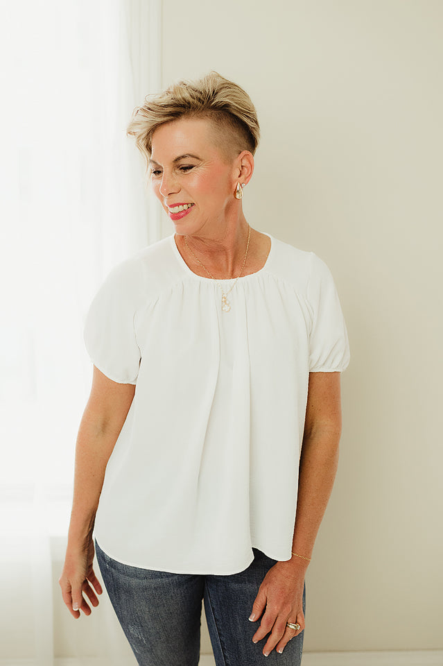 Add some fun to your wardrobe with this Pure Essence Blouse. Perfect for a casual day out or dressed up for a night on the town. Made in the USA.