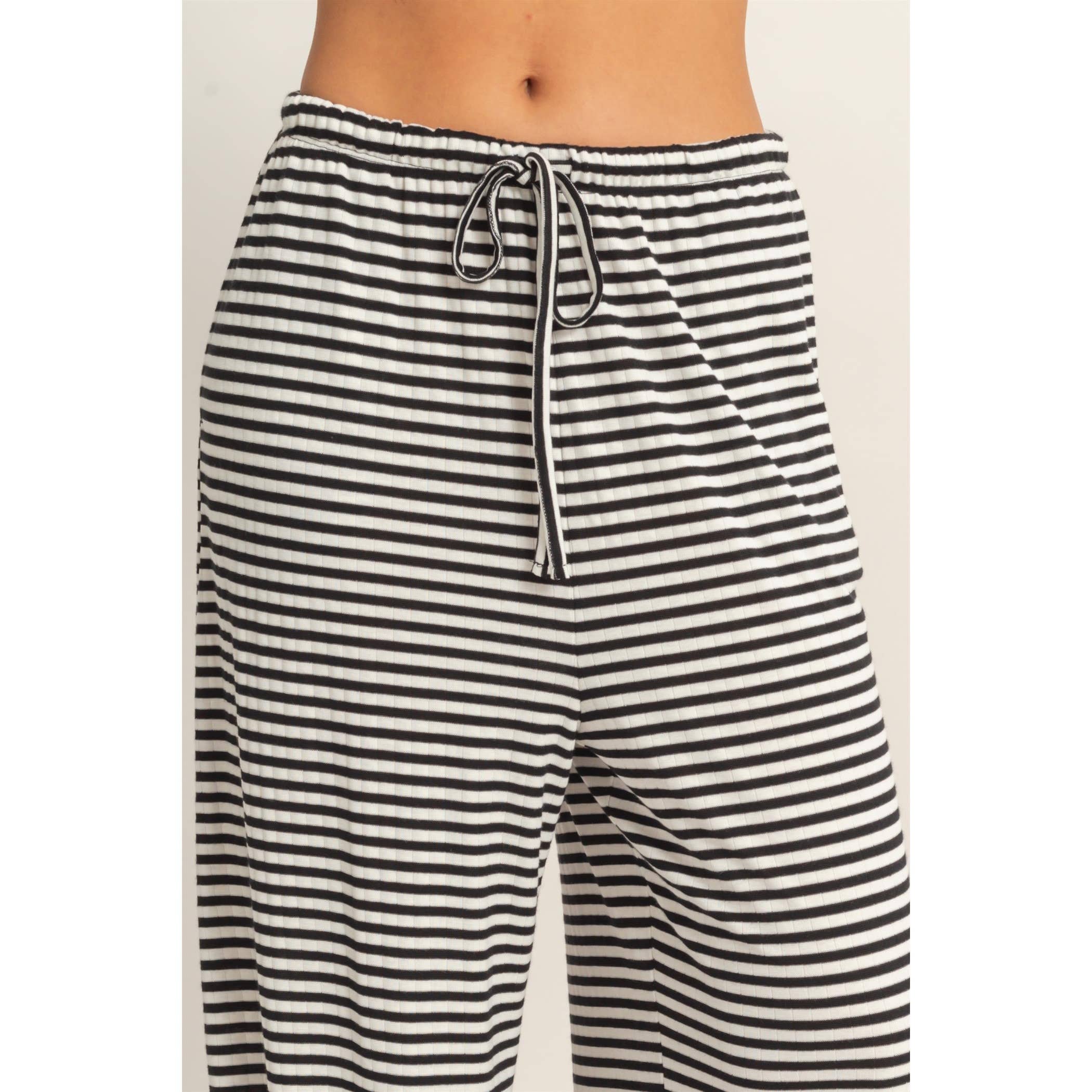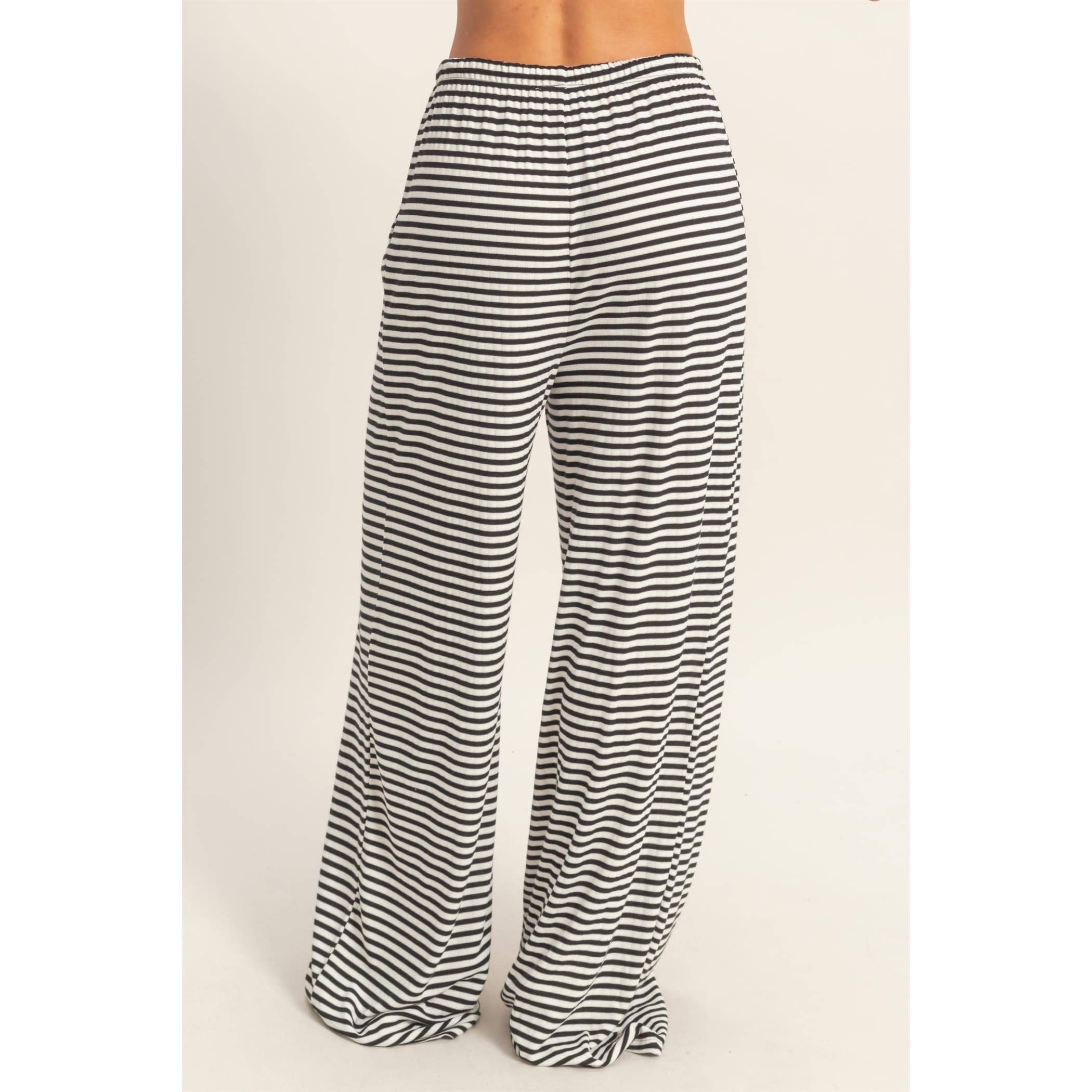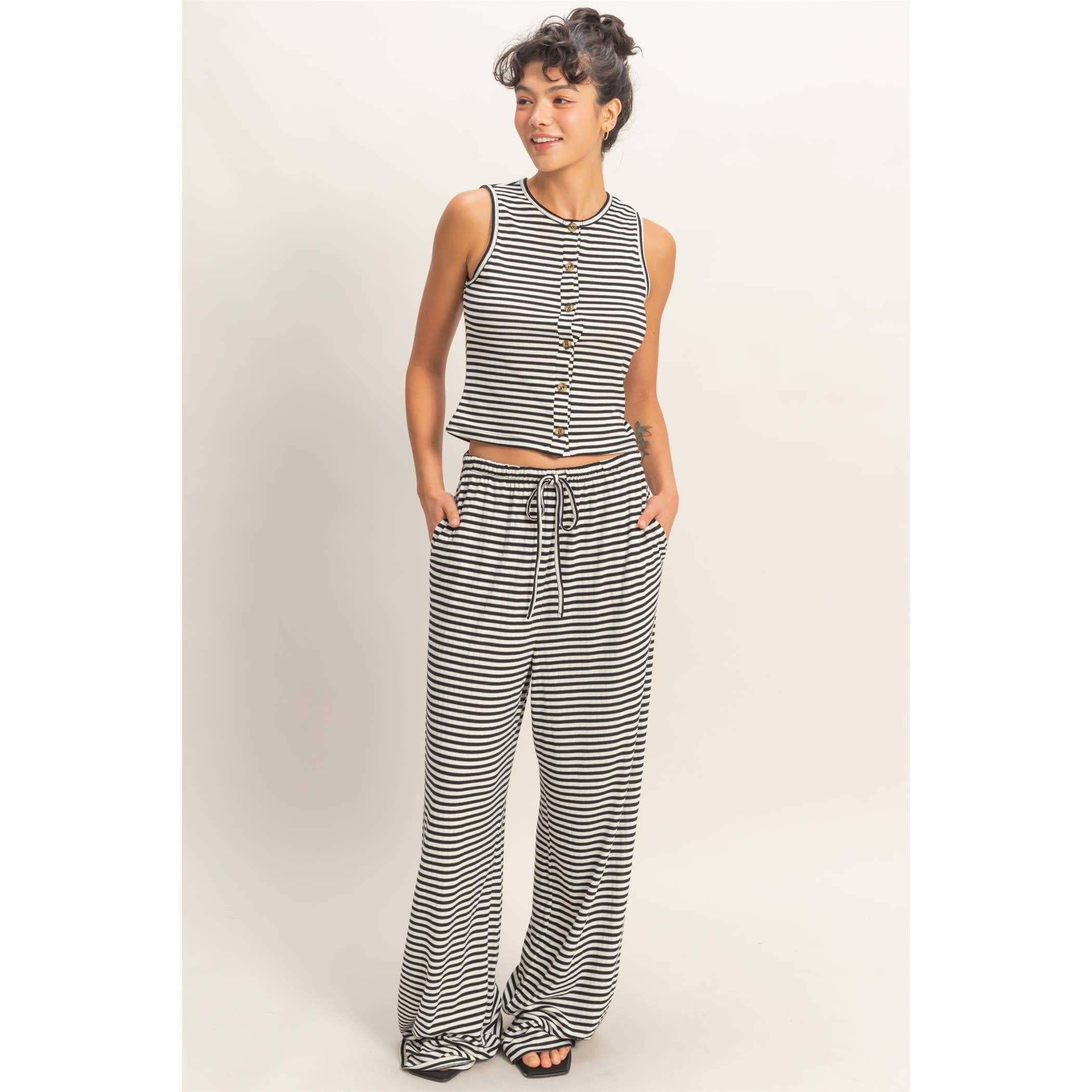 Float through your day in these effortlessly cool wide-leg Striped Crew Pants, crafted from a silky-smooth fabric that drapes like a dream. Subtle horizontal stripes add a touch of interest, while the high-rise elastic waistband with an adjustable drawstring keeps things comfy and customizable. Finished with handy side pockets and a relaxed, breezy silhouette, they’re your go-to for laid-back style. Pair with a fitted sleeveless top and simple flat sandals for an easy, chic look you’ll reach for on repeat.