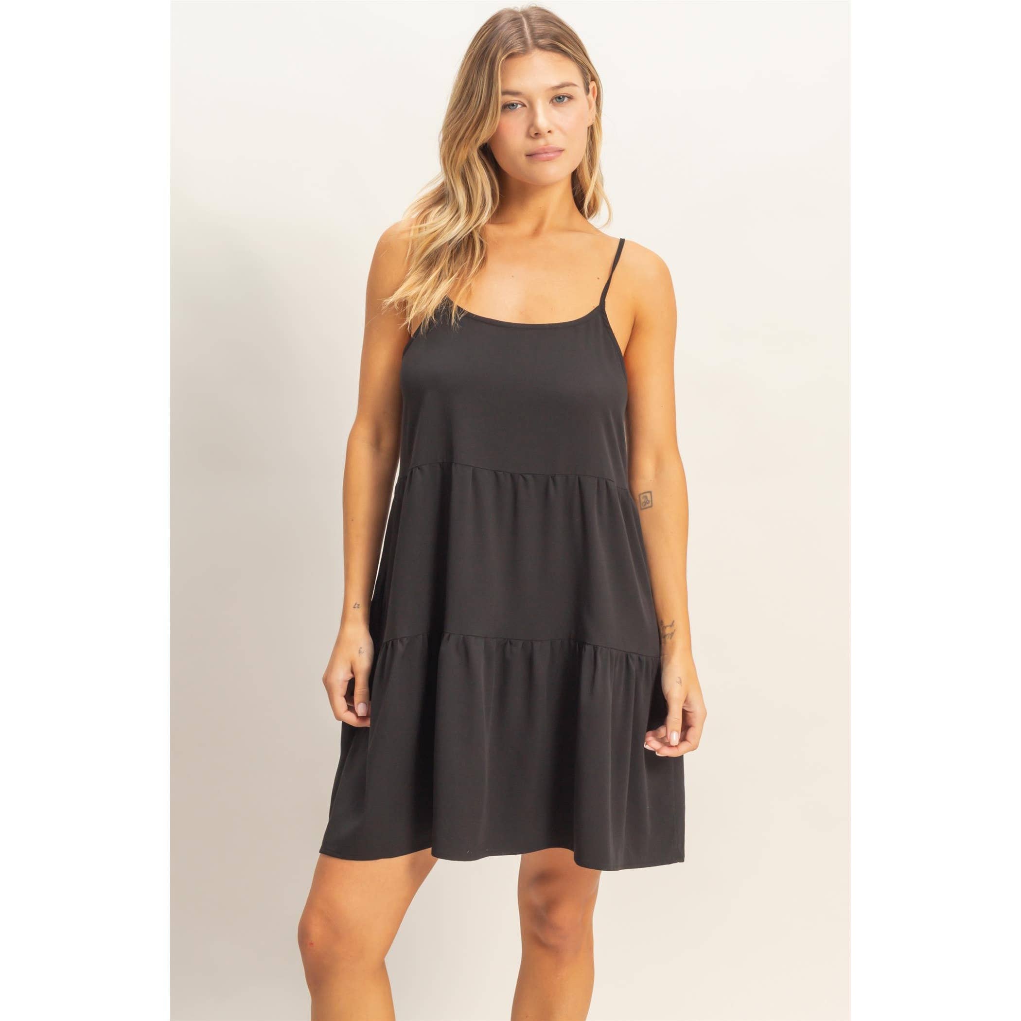 This charming Tiered Grace Dress features delicate spaghetti straps and a relaxed, flowing silhouette for an effortlessly feminine feel. The tiered design adds soft movement and dimension, making it perfect for warm, sunny days. Style it with strappy sandals for an easy, romantic look that works for both casual outings and special occasions.