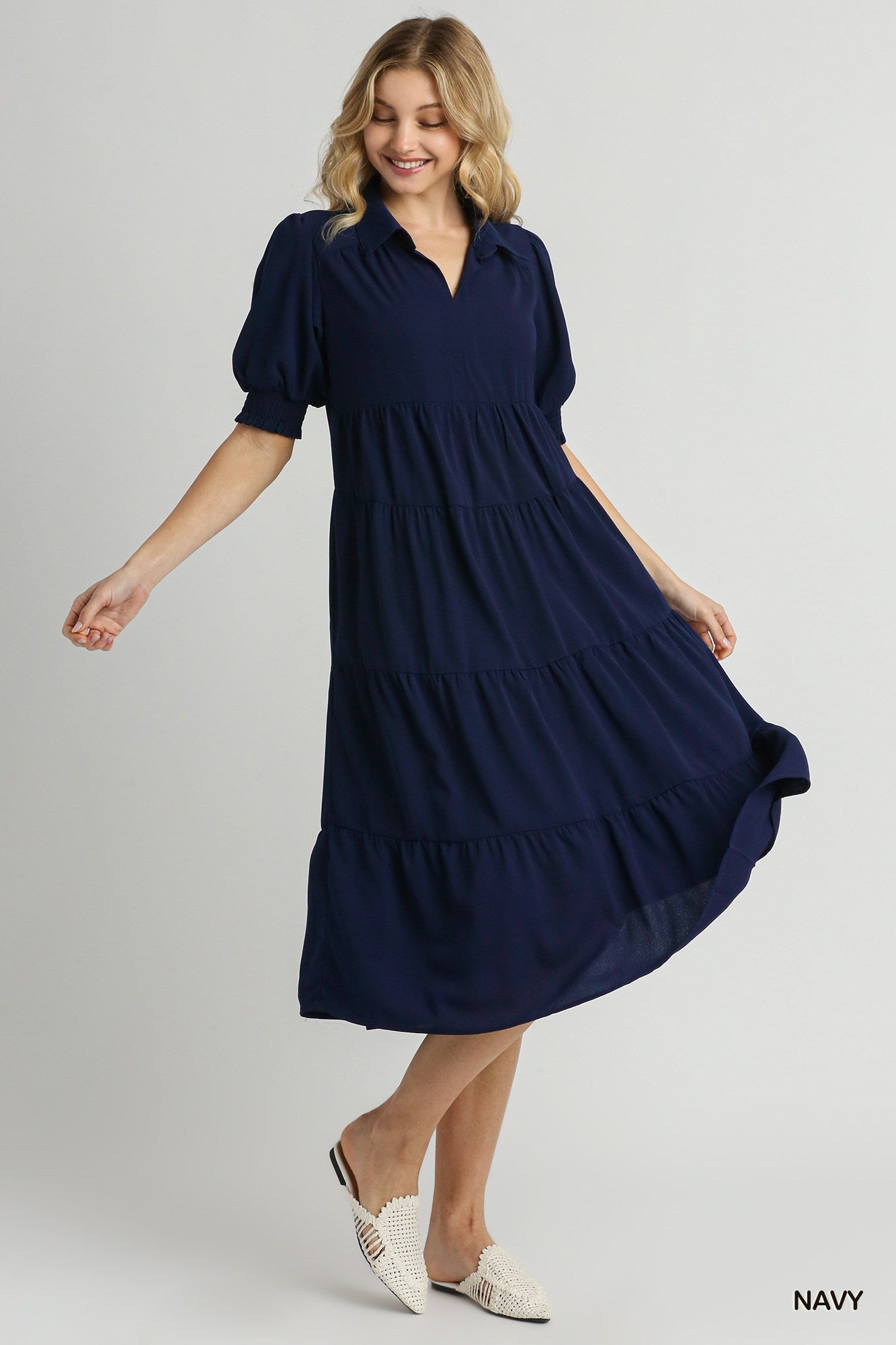 Get dressed to impress with our Timeless Tier Maxi! This collared dress features tiered layers, adding a touch of elegance and uniqueness to your wardrobe. Make a statement and stand out from the crowd with this one-of-a-kind piece!