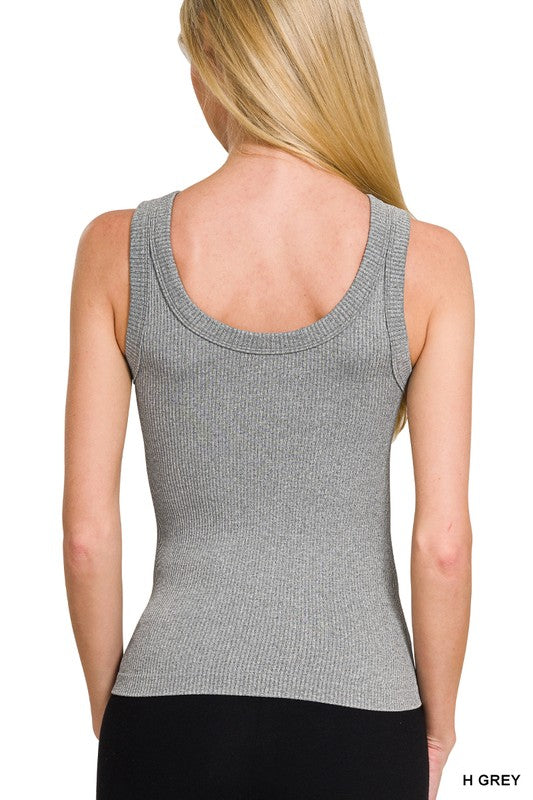 This Two Way Tank is your new go-to for effortless style and comfort. Featuring a versatile neckline that lets you switch up your look, its washed seamless ribbed fabric feels soft and moves with you all day long. Perfect for layering or wearing solo, this tank adds a playful twist to any outfit!