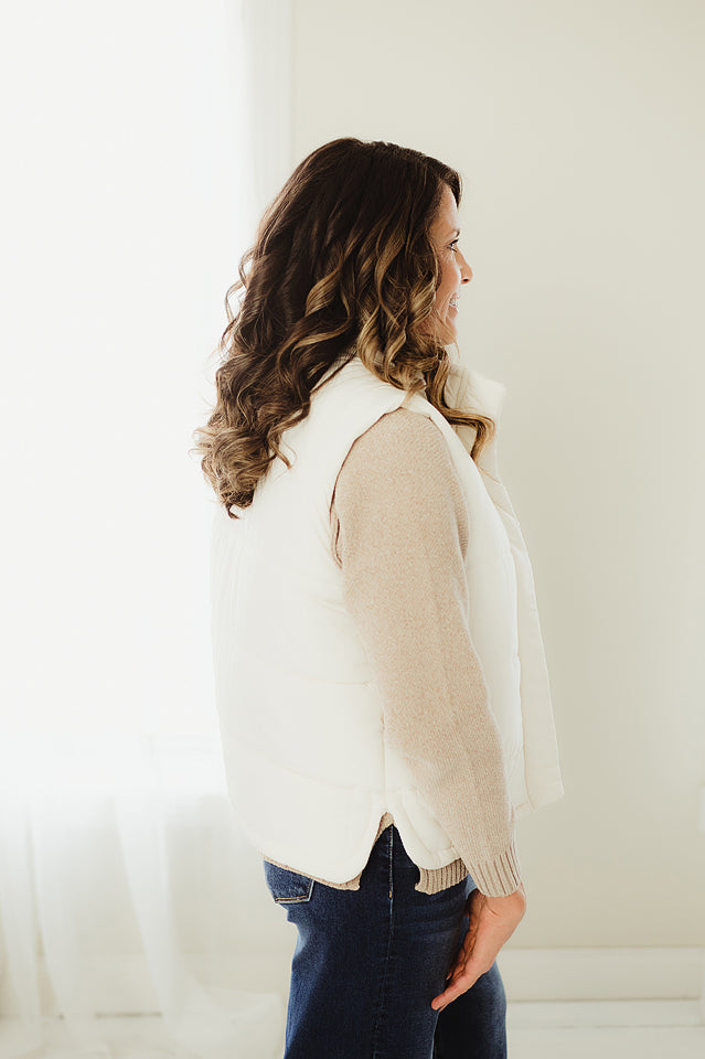 A timeless layer with a modern twist, Wexford Quilted Vest is designed for effortless style and all-day comfort. Featuring a slightly hi-low hem for a flattering silhouette and extra coverage in the back, it’s perfect for layering over your favorite knits or long sleeves. Thoughtfully crafted with soft lining for added warmth and side pockets to keep your hands cozy (or your essentials close). Lightly structured and endlessly versatile—this is the vest you'll reach for season after season.