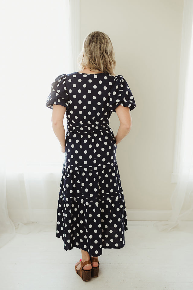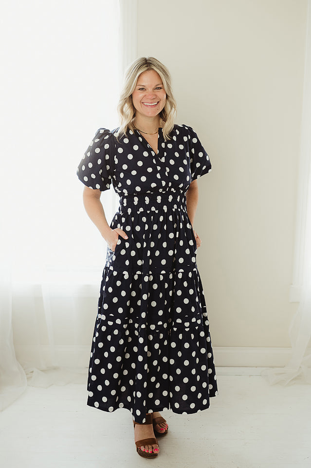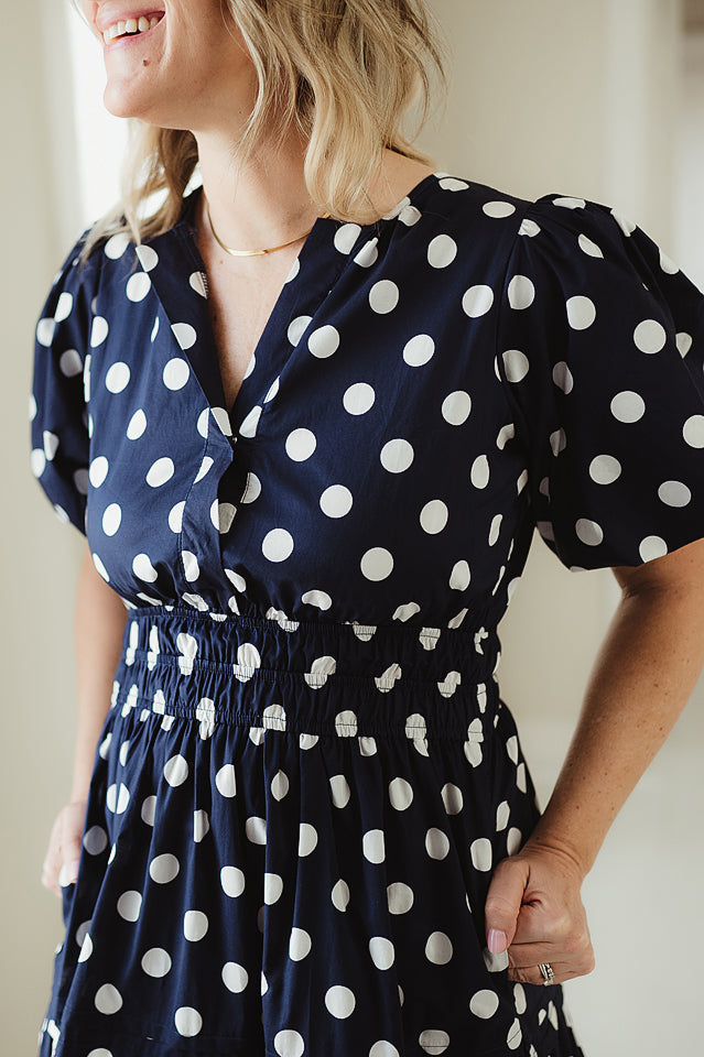 Charming and effortlessly feminine, this puff sleeve Polka Dot Charm Dress features a playful polka dot print on a lightweight woven fabric, designed with delicate pintuck detailing and a flattering elastic waist that enhances your natural silhouette. The two-button V-neckline adds a touch of versatility and subtle allure, while the voluminous puff sleeves bring a romantic feel. A lined skirt ensures comfortable coverage and graceful movement, and the addition of side pockets offers everyday practicality. Perfect for brunch dates, casual outings, or seasonal gatherings, this dress blends classic details with modern ease.